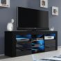 The FJORD TV Unit brings a modern flair to your living room, serving as a stylish and functional centerpiece that complements any decor. Measuring 145cm (W) x 53cm (H) x 35cm (D), this sleek unit offers the perfect balance of storage and display options, making it an excellent choice for your home entertainment setup. The matte-finished body is paired with high-gloss doors, creating a clean and contemporary look that adds sophistication to your space. Five open compartments provide ample room for media devices, decor, or everyday items, while the inclusion of glass shelves illuminated by LED lighting adds a modern and elegant ambiance. Crafted from durable 16mm chipboard and MDF, the FJORD TV Unit is built to last without compromising on style. Thoughtfully designed with easy cable access, it ensures that wires and cords remain neatly organized, keeping your entertainment area clean and clutter-free. Available in White & Gloss Doors, White & Grey Gloss Doors, Black & Gloss Doors, Oak & White Gloss Doors, and Dark Grey & Gloss Doors.
