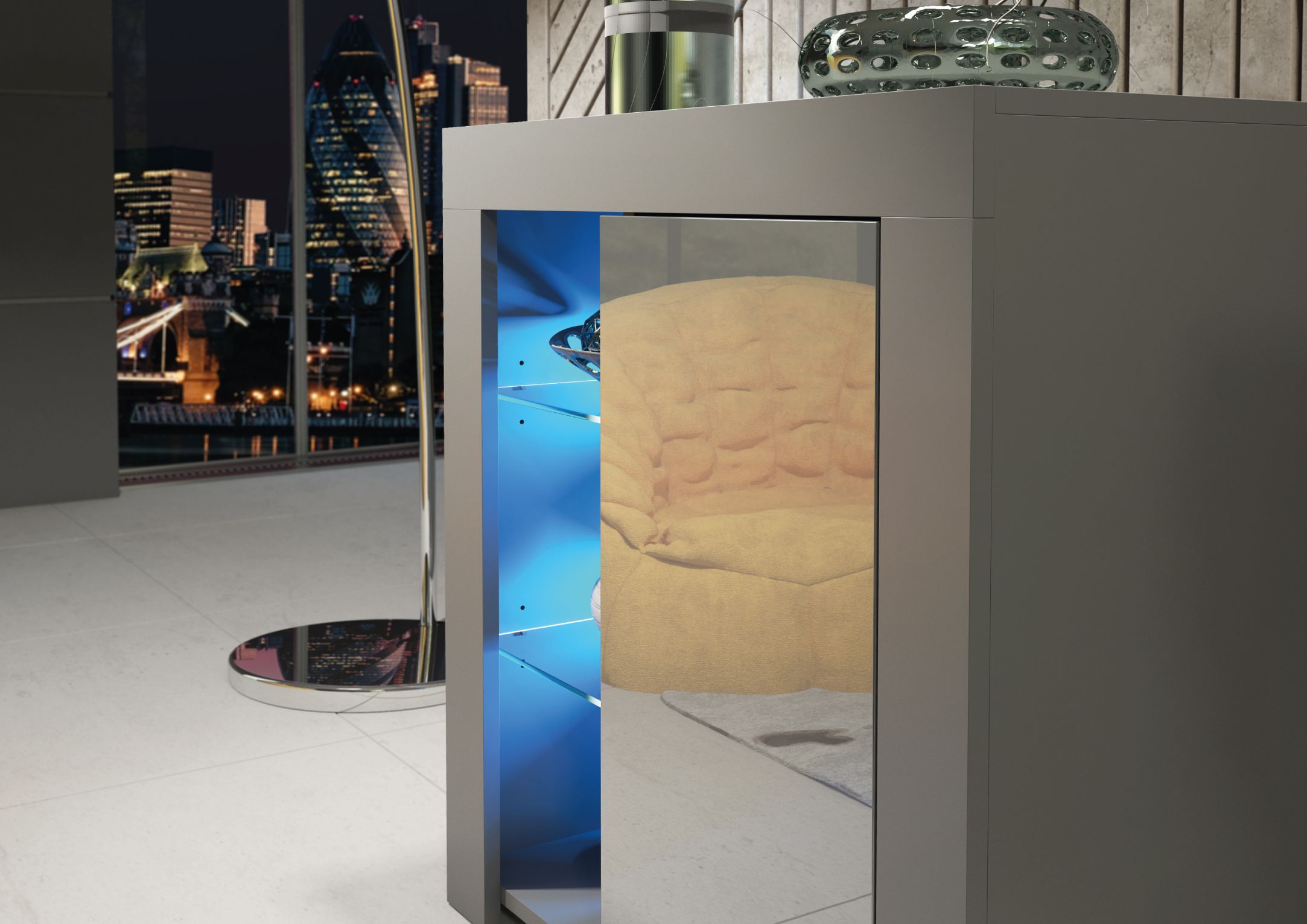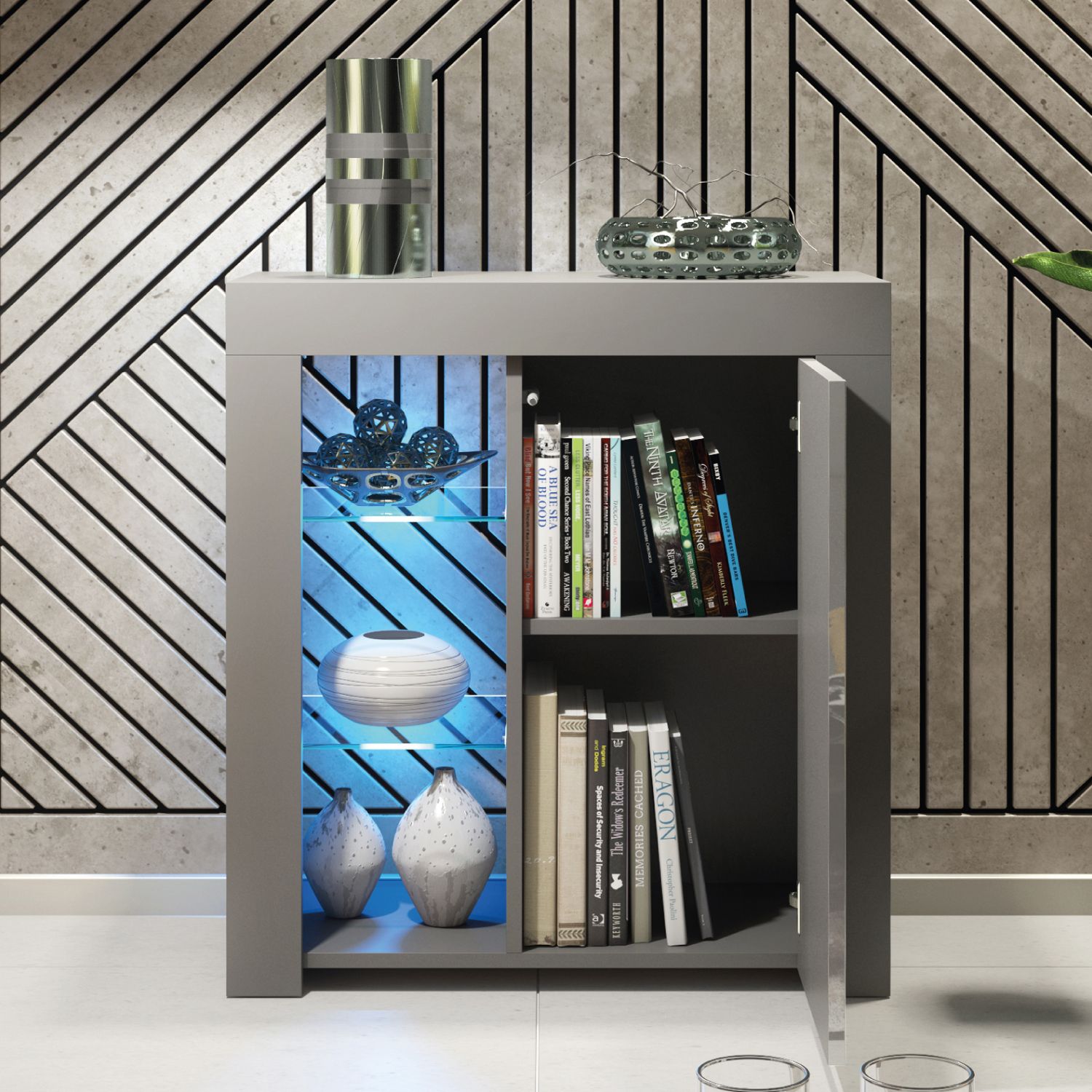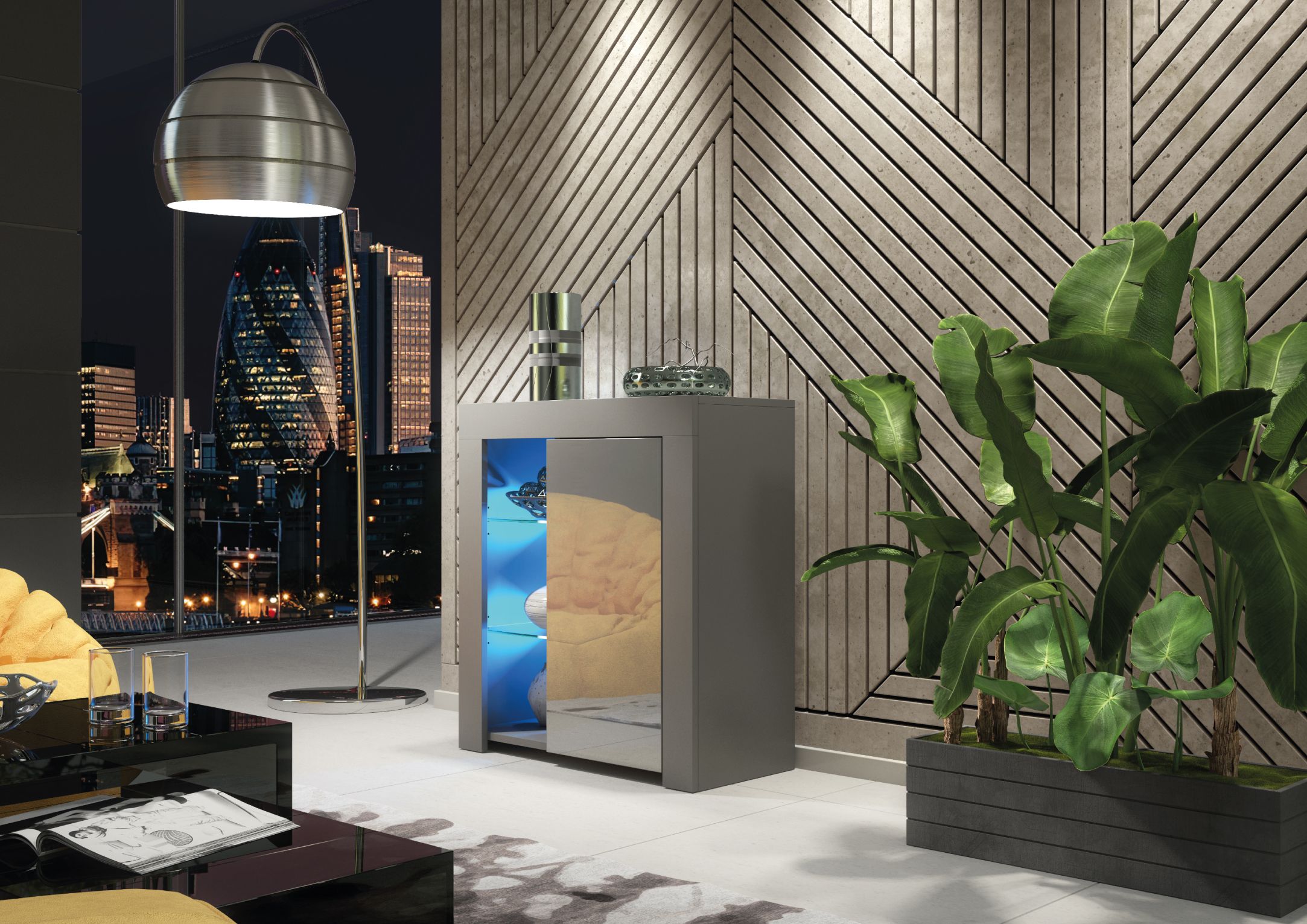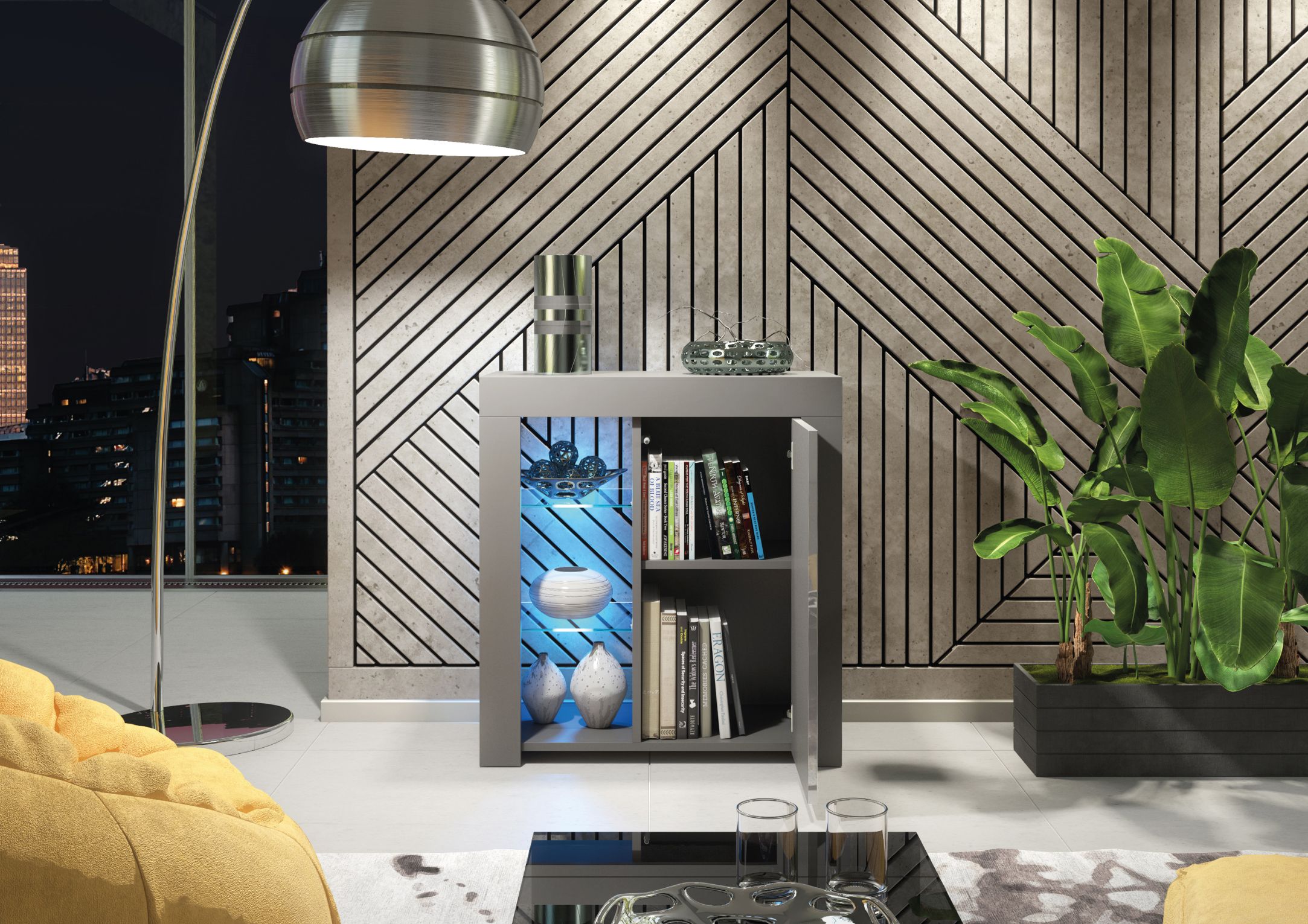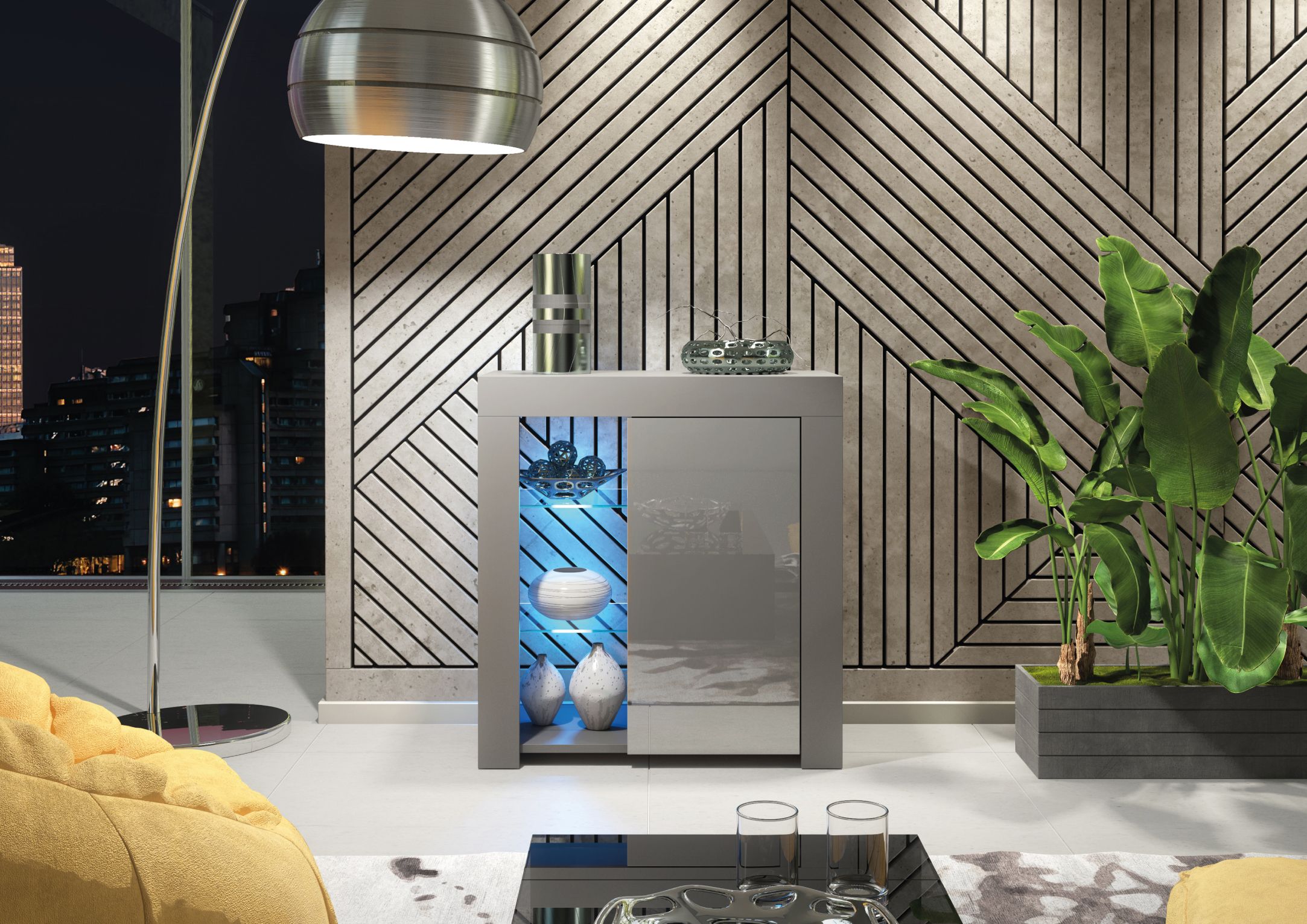 The FLASH Sideboard adds a touch of modern elegance to your home, serving as a stylish yet practical storage solution for smaller spaces. Measuring 75cm (W) x 83cm (H) x 35cm (D), this compact piece enhances both functionality and style, offering ample storage options while fitting seamlessly into any contemporary interior. The matte-finished body is paired with a glossy push-to-open door, which opens effortlessly to reveal a spacious internal compartment, perfect for storing everyday essentials and keeping your space tidy and organized. Available in White & Gloss Doors, White & Grey Gloss Doors, Black & Gloss Doors, Walnut & Black Gloss Doors, Oak & White Gloss Doors, and Dark Grey & Gloss Doors, the FLASH Sideboard is a sophisticated and functional addition to your living space.Please note: the Oak with Black version features matte black doors, providing a subtle and stylish alternative to the glossy finishes in other color combinations.