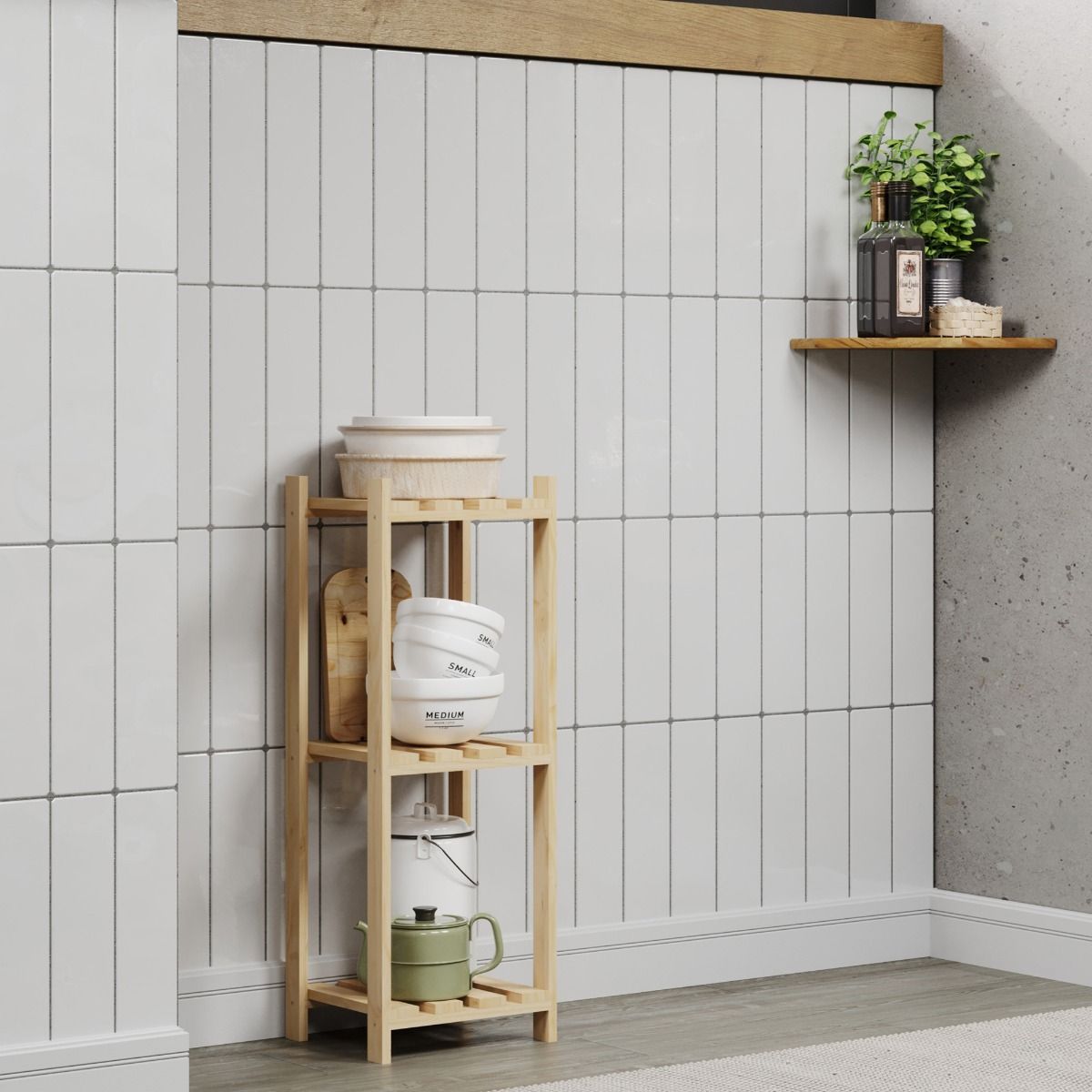 FLEXOR Narrow Storage Unit Wood Slatted Shelving Adjustable Storage - Natural, 29cm