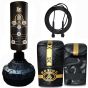 Elevate your training with the FlexPunch Pro Freestanding Boxing Bundle. Perfect for workouts, it helps develop hand-eye coordination and skills. Its pedestal style (Free Standing) eliminates the need for wall holes, providing a hassle-free heavy-duty punch bag experience. The base, easily filled with sand, ensures stability during intense sessions. Assemble or disassemble effortlessly for convenience. The shock absorption high dense inner layer, coupled with upper soft foam layer padding, enhances your training experience. Enjoy a tool-free installation without ceiling holes or bolts. The package includes an Adult Freestanding bag, a pair of bag mitts, and a Skipping Rope.