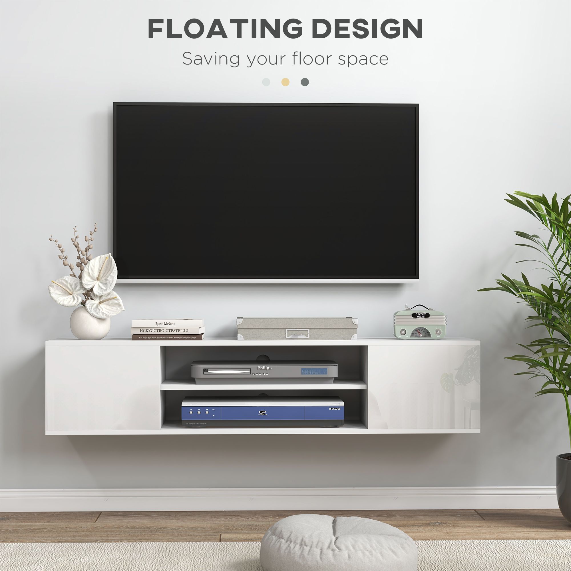 Floating TV Stand Cabinet for TVs up to 60", Wall Mounted TV Unit w/ Open Shelf, Storage Cupboards, Cable Management, White