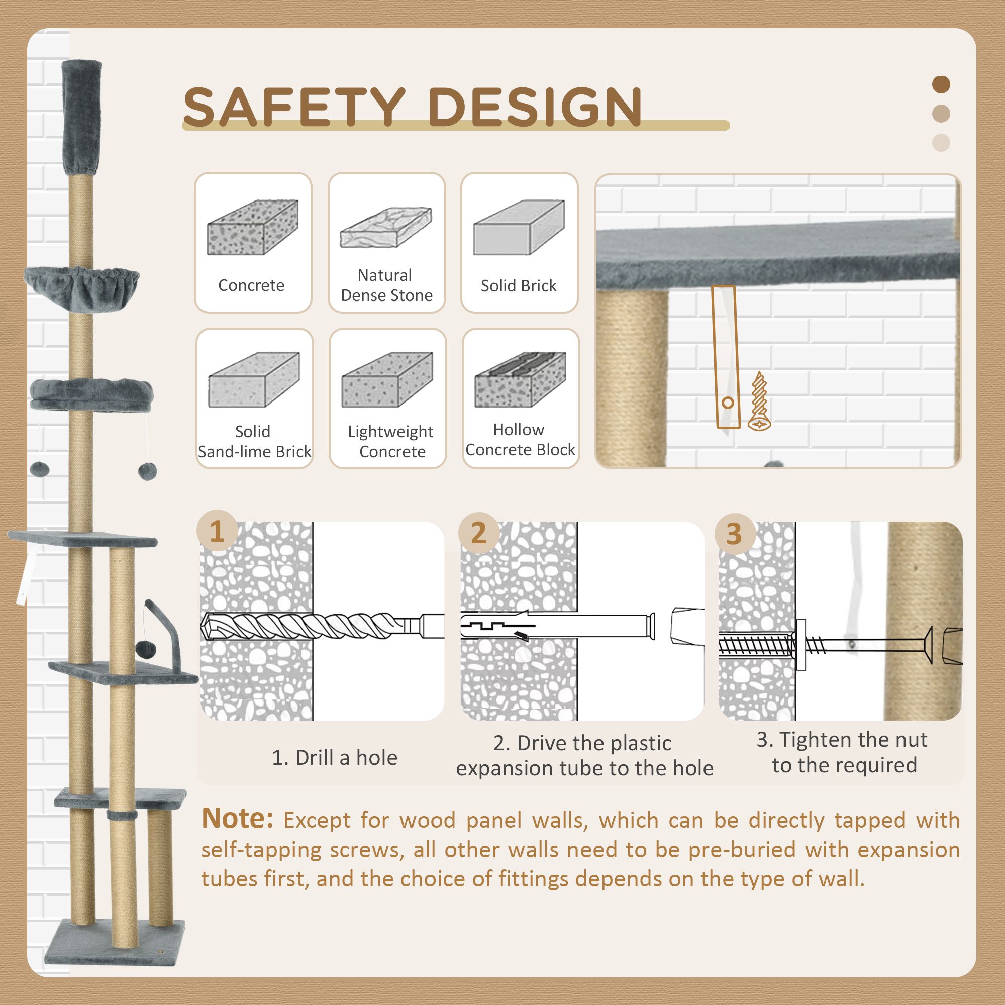 Floor to Ceiling Cat Tree, 6-Tier Play Tower Climbing Activity Center w/ Scratching Post, Hammock, Adjustable Height 230-250cm, Grey