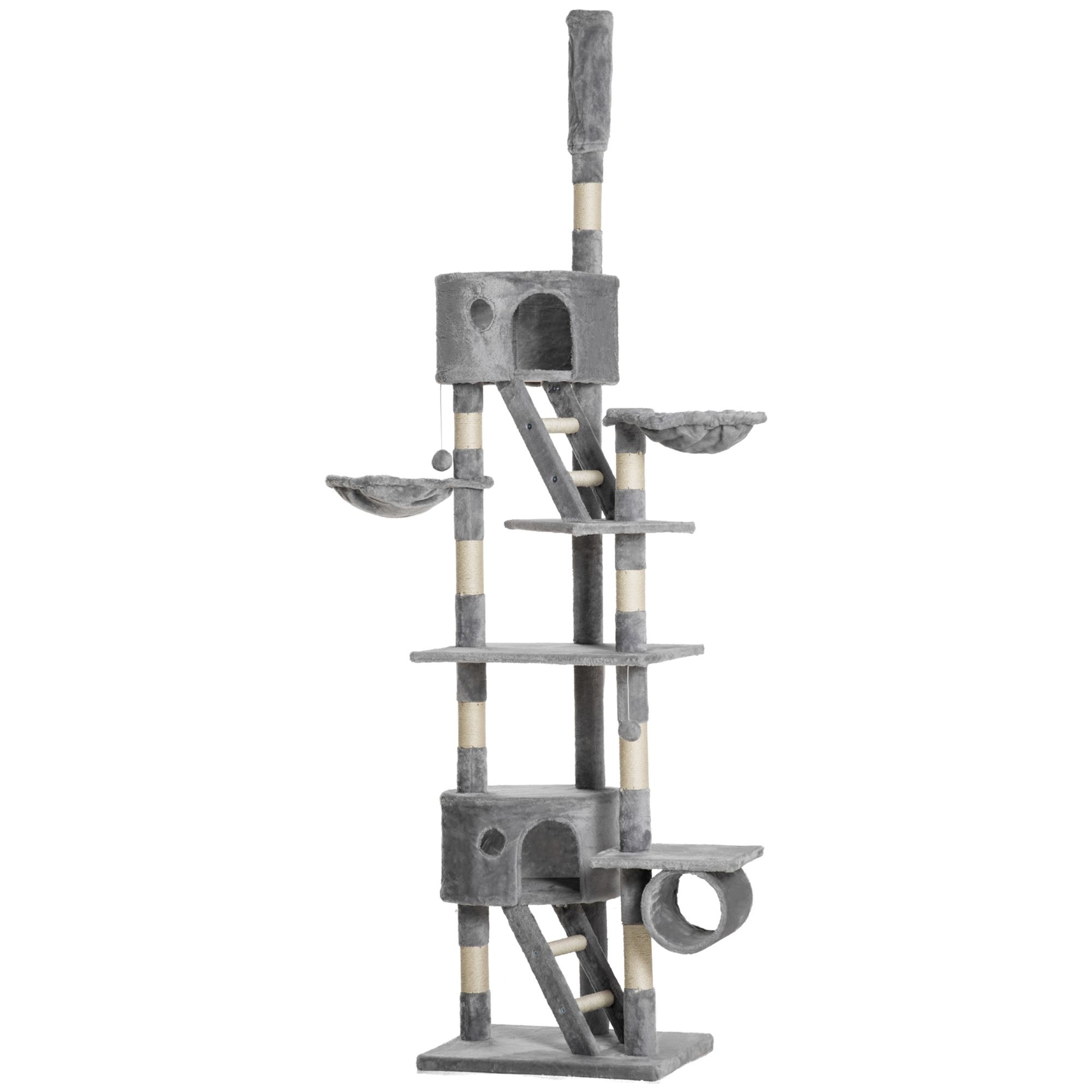 Floor to Ceiling Cat Tree for Indoor Cats 240-260cm Adjustable Height Light Grey