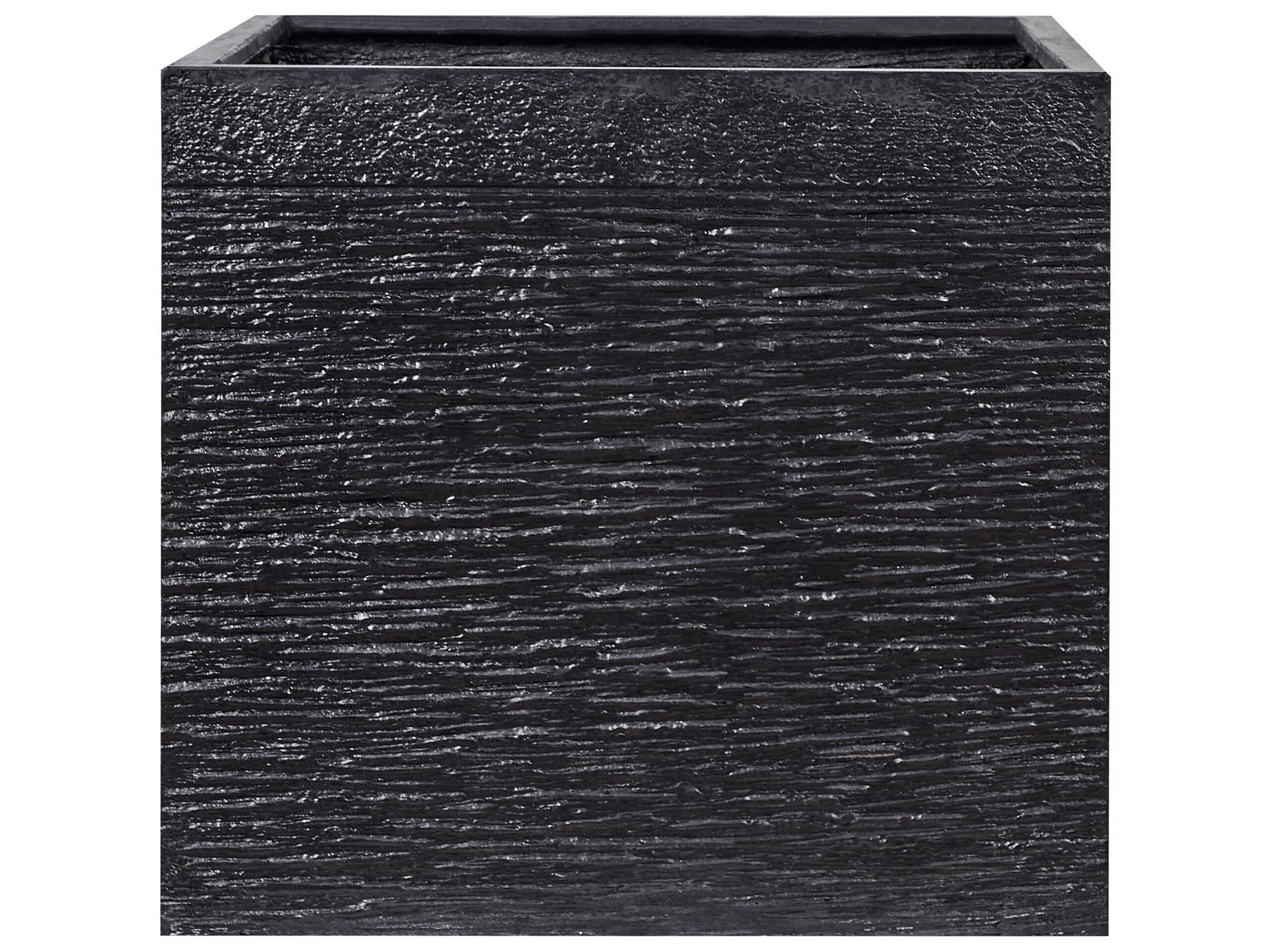 Indoor or outdoor, this planter is an ideal decoration for any living space. Give your plants a beautiful, black monumental base while adding a touch of raw minimalistic style to their surroundings. Mix different sizes of the planters for a perfect composition to get the most of their geometric yet natural and organic look or use it as a single, eye-catching accent. The durable material combination of fibre clay and fibreglass guarantees resistance to different weather conditions. Details: Color: Black. Main material: Fibre Clay. Additional material: Fibreglass. Weight: 12 Assembly: Does Not Require Assembly Overall Dimensions: 50x50x46