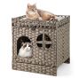 Foldable 2-tier Rattan Cat Litter Box Enclosure with Litter Mat-Grey