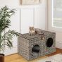 Foldable Cat Bed for Indoor Cats 60 cm x 35 cm x 35 cm Large Rattan Kitten Condo House-Grey