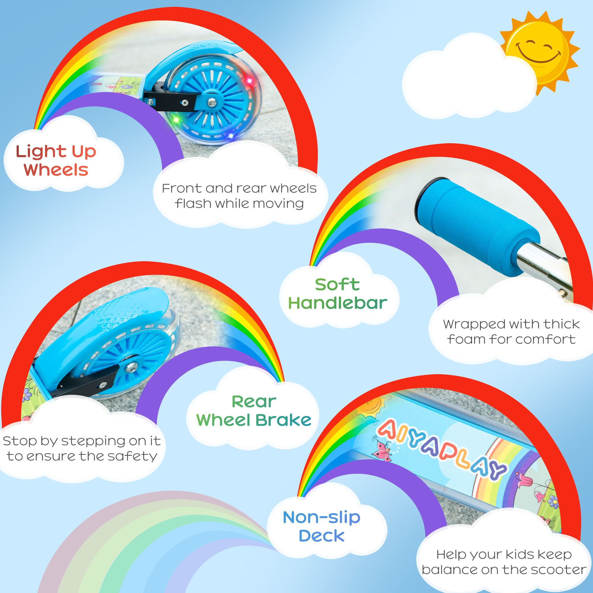 It's wrapped with thick foam, making it comfortable to hold. Finished with a rear brake, which brings it to a swift stop; a safe way for endless enjoyment.