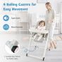 Discover the Ultimate Multifunctional High Chair for Babies and Toddlers: Foldable and Secure!Looking for a high chair that grows with your child and provides ultimate versatility? Look no further! Our 5-in-1 multifunctional high chair is the perfect solution for mealtime and beyond. We understand that every child is unique, which is why our high chair is equipped with multiple adjustable settings. The 7-level adjustable height feature allows you to find the perfect position, ensuring a comfortable feeding experience. The 5-level reclining backrest offers additional support and relaxation options for your little one. Plus, the 3-angle adjustable and 3-length retractable footrest accommodates growing legs, providing optimal comfort as they enjoy their meals. Made with high-quality materials and a sturdy structure, you can rest assured knowing that your little one is safe and secure during mealtimes. The folding design makes it easy to store and transport, while the wheels allow for effortless manoeuvrability from room to room. Whether it's mealtime, playtime, or naptime, our multifunctional high chair is the perfect companion for your growing child. Watch as they develop their independence and enjoy mealtime in style and comfort. Multifunctional Design: This multifunctional baby high chair is suitable for babies aged 6-36 months. It can be used as an independent eating chair, feeding chair, infant sleeping chair, game chair, or child seat, providing versatility for different stages of your child's development. Multiple Comfortable Adjustments: The baby high chair is designed with a 5-level reclining backrest, which can satisfy different postures of your baby. And there exists a 7-position adjustable height to match your tables of different heights in your home. Moreover, the retractable footrest can also be adjusted in 3 angles and 3 lengths, providing optimal comfort for your little one. Safe Material and Sturdy Structure: This kid's feeding chair is made of food-grade PP material that is BPA-free, odorless, and safe for kids to use. Besides, the chair adopts a stable triangular structure and thick aluminum tubes, ensuring excellent stability and safety. And there exists a 5-point safe harness with adjustable straps to keep the baby securely in place without leaning forward. One-Button Folding and Easy Transportation: The removable double trays can be stored on the back and the portable high chair can be folded in seconds with a quick-folding button. Therefore it would not take up much space for storage and is easy to carry anywhere you want. Moreover, there also exist 4 rolling casters for easy movement. And the rear casters can be locked for safety. Extra-Large Double Trays and Easy Cleaning: The detachable double trays with 2 adjustable positions feature an upper tray for eating and a lower tray for playing, and there has a built-in cup holder. In addition, the upper tray is dishwasher-safe and heat-resistant, allowing for easy cleaning. And the seat cushion is detachable and easy to clean with a wipe cloth.