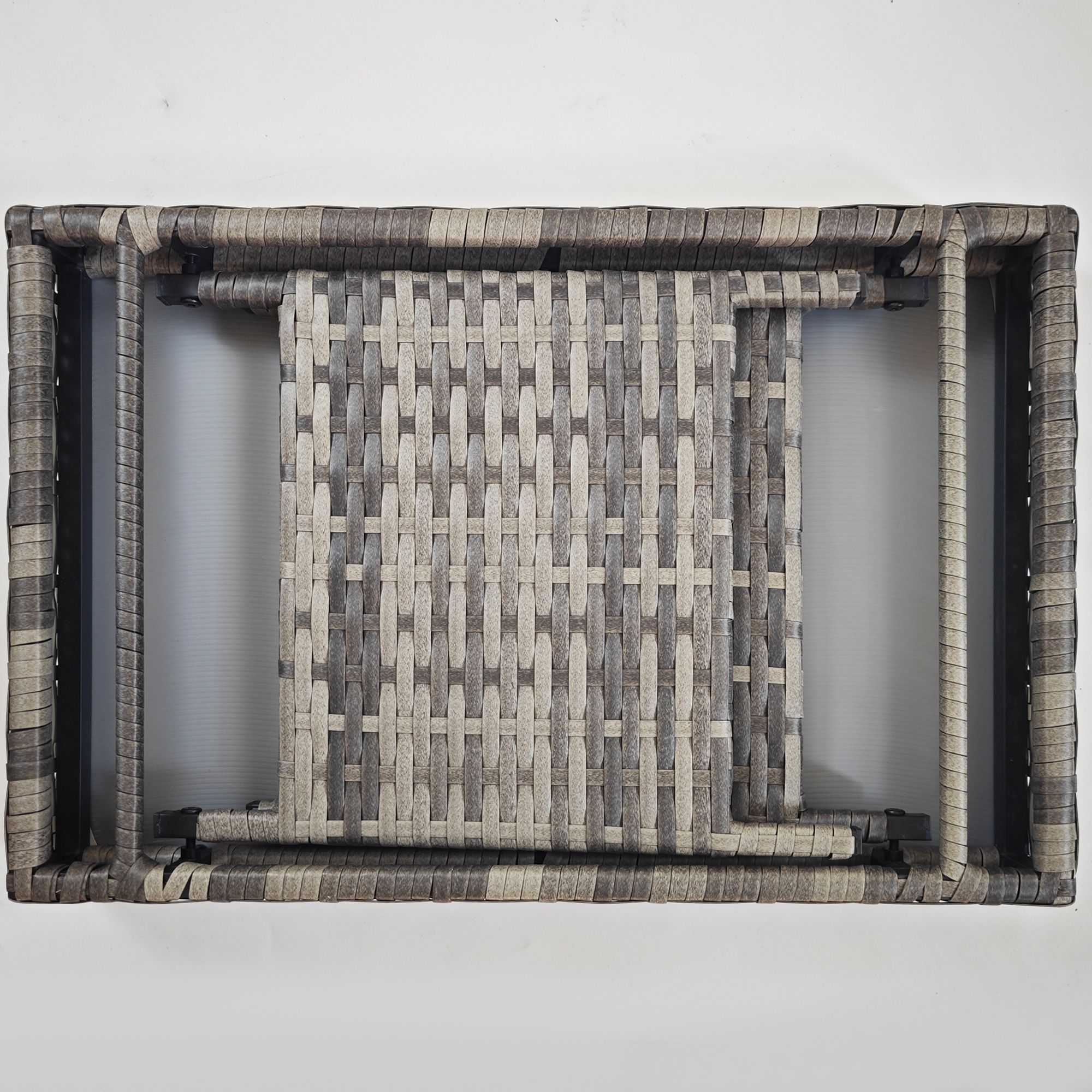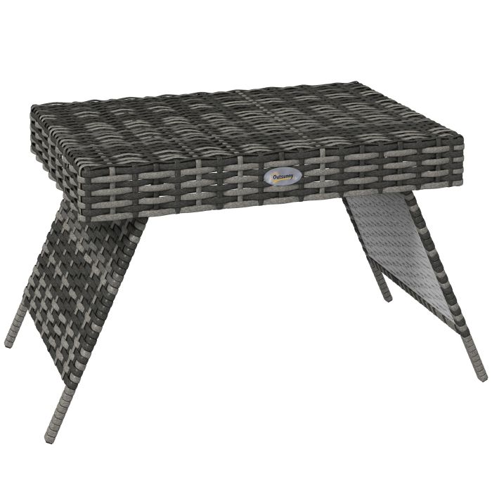 Foldable Outdoor Coffee Table, Metal Frame Rattan Side Table, Coffee Table Side Table for Lawn, Garden, Mixed Grey