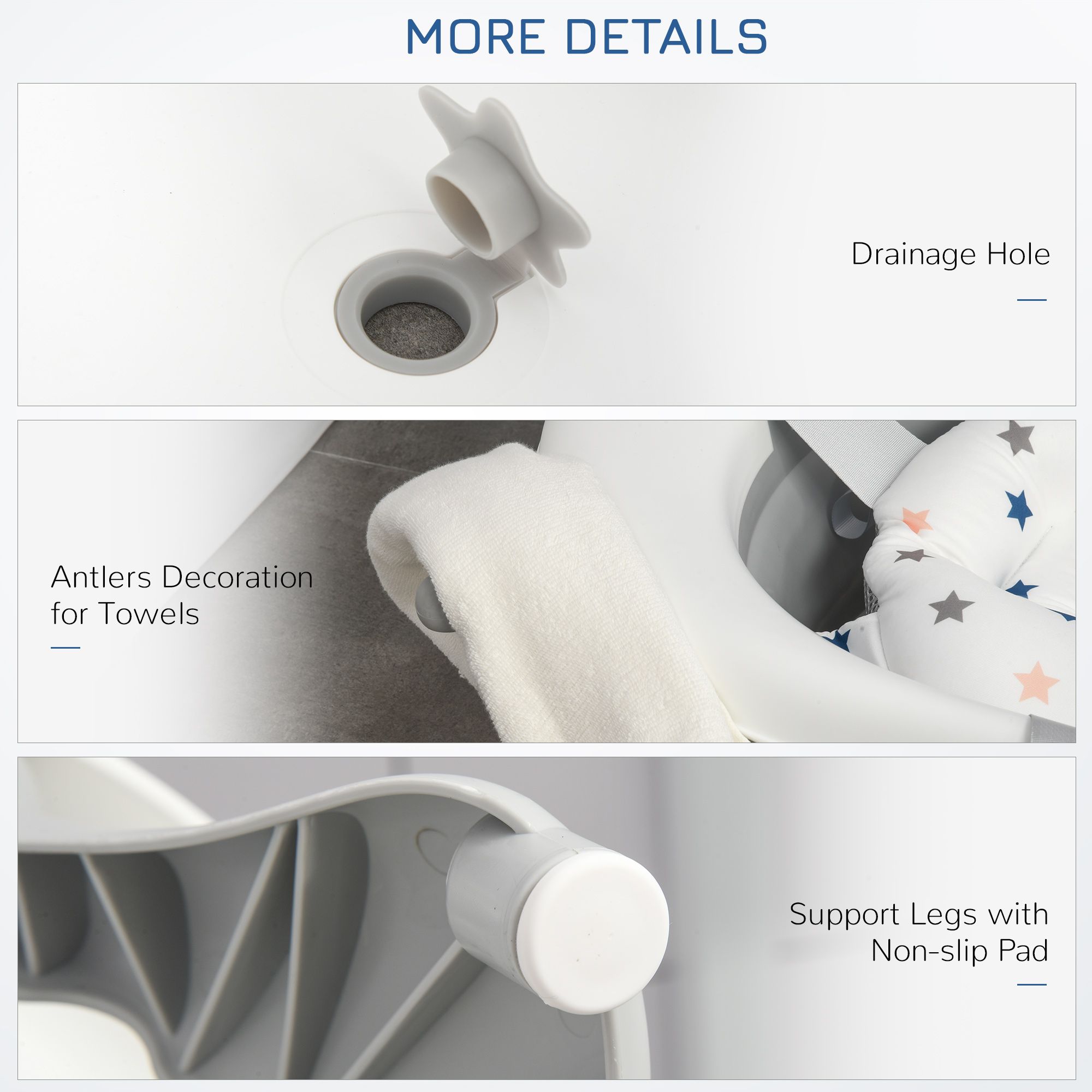- MULTI-FUNCTIONAL DESIGN: Cute design with a pair of antlers in the front of this tub, grabs more attention from your kid and you can also put towels on them. And the foldable design makes storage easier.
