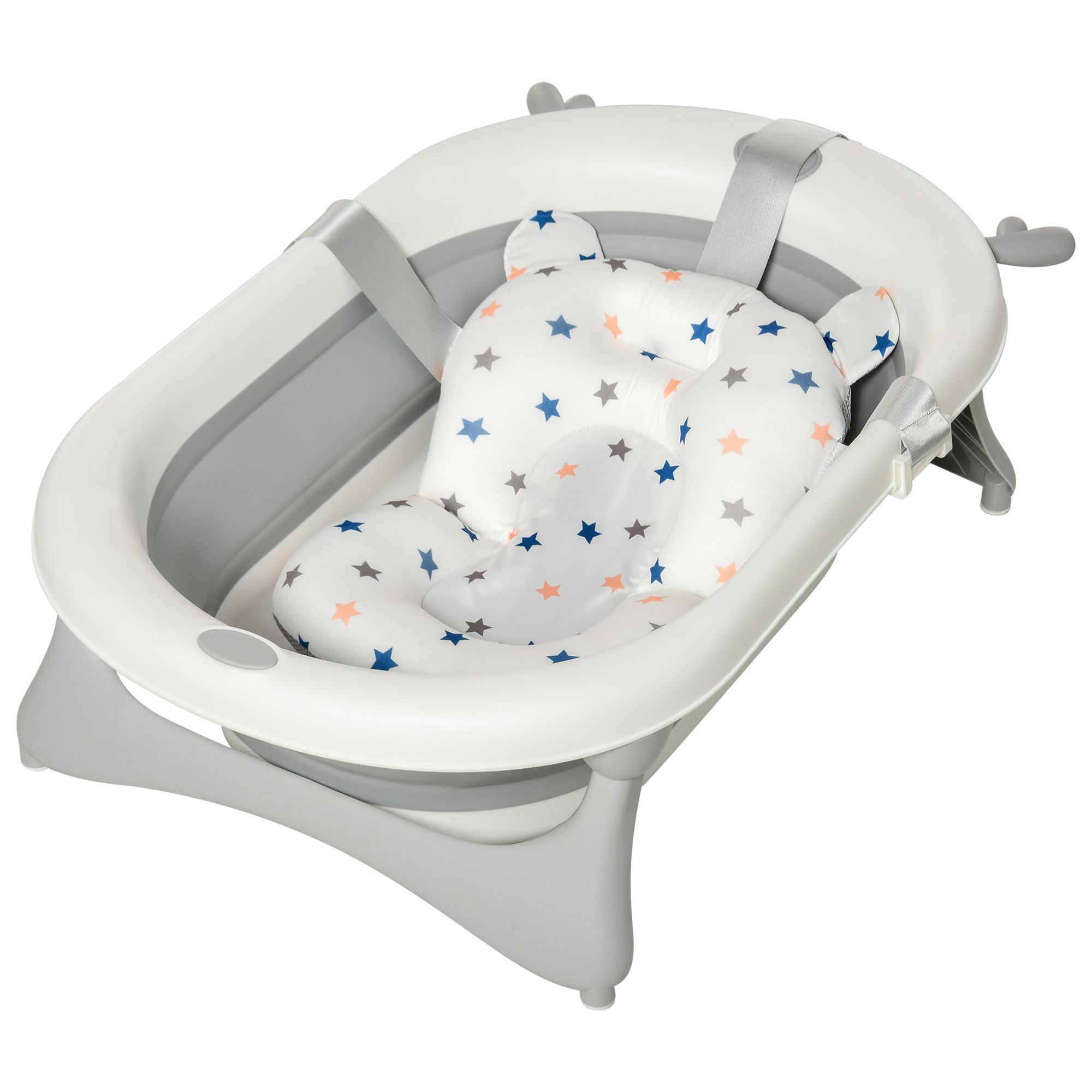 Make your baby's bathtimes fun and safe with this tub from. The curved and ergonomic design makes their cleaning time comfortable for them. It's fitted with a temperature indication plug, which turns white when the water reaches 37„ƒ - ensuring they won't burn - 37„ƒ being the best temperature to keep them in. The compact size, with folding legs, means it's easy to store and set up in the sink or your bath. It's finished with non-slip foot pads for extra safety and stability.
