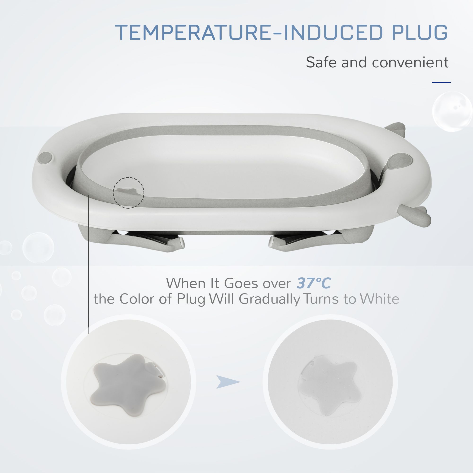 Foldable Portable Baby Bathtub w/ Baby Bath Temperature-Induced Water Plug for 0-3 years