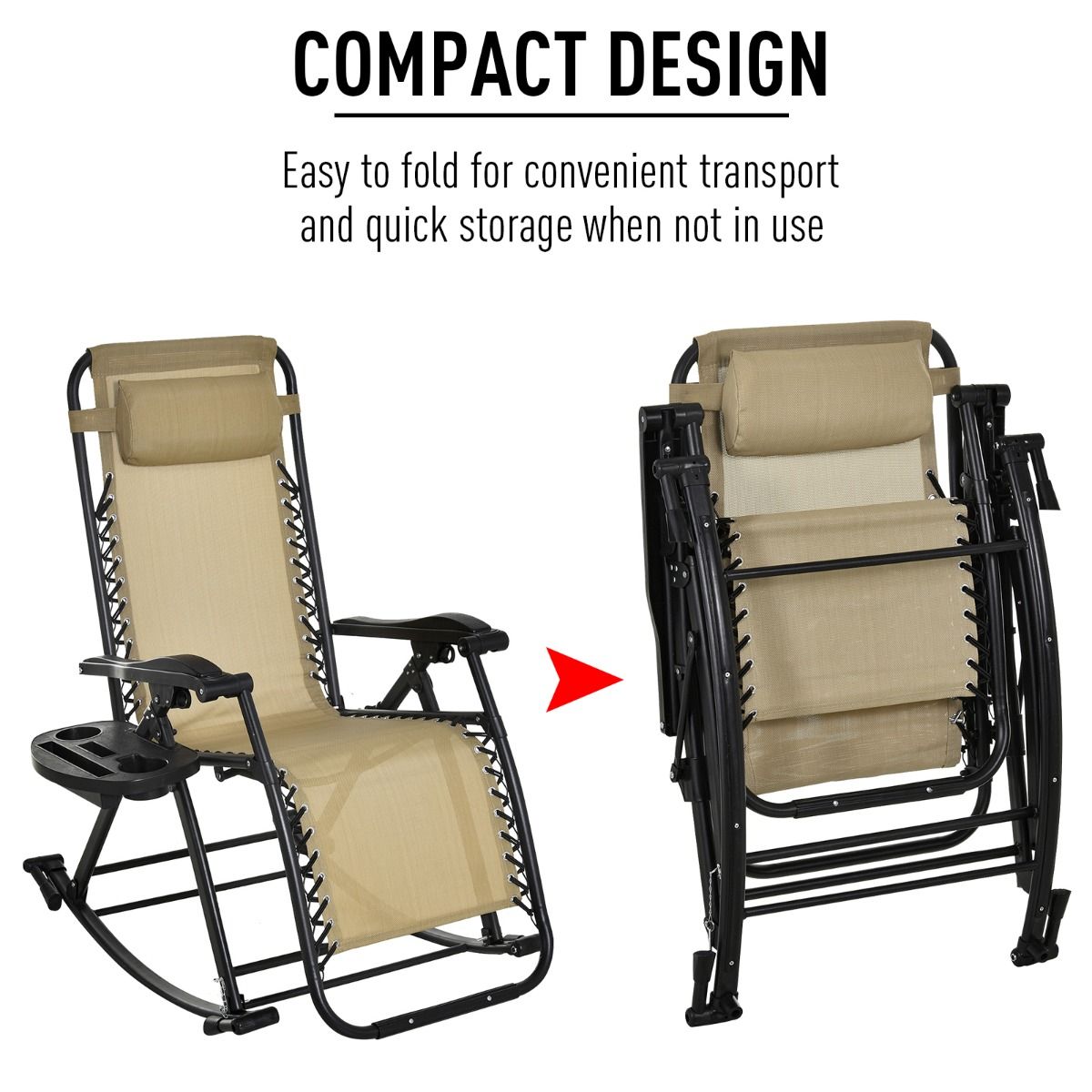 This rocking garden lounge chair is the perfect gateway to total relaxation in the sun. With a powder coated steel frame for durability that lasts for years, it can be set in several ways – from a low back to a high back, to stationary to rocking back and forth. It features a durable texteline sling fabric cover and a removable padded headrest to create even more comfort during your downtime. Foldable and lightweight, you can move it around easily – ideal for chasing those sun rays around.