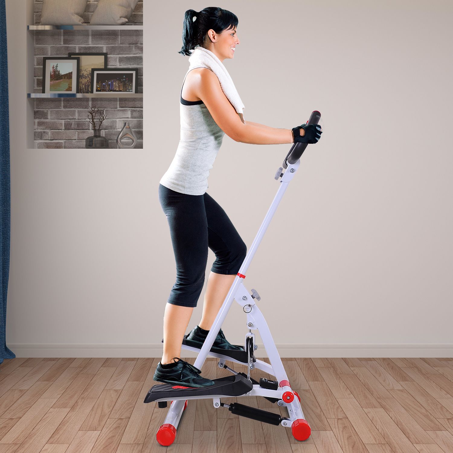 Foldable Stepper with Handle Hand Grip Workout Fitness Machine Sport Exercise Gym Bar Cardio Steel-White/Red Spinning