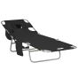 Foldable Sun Lounger, Beach Chaise Lounge with Reading Hole, Arm Slots, 5-Position Adjustable Backrest, Side Pocket, Pillow for Patio Black