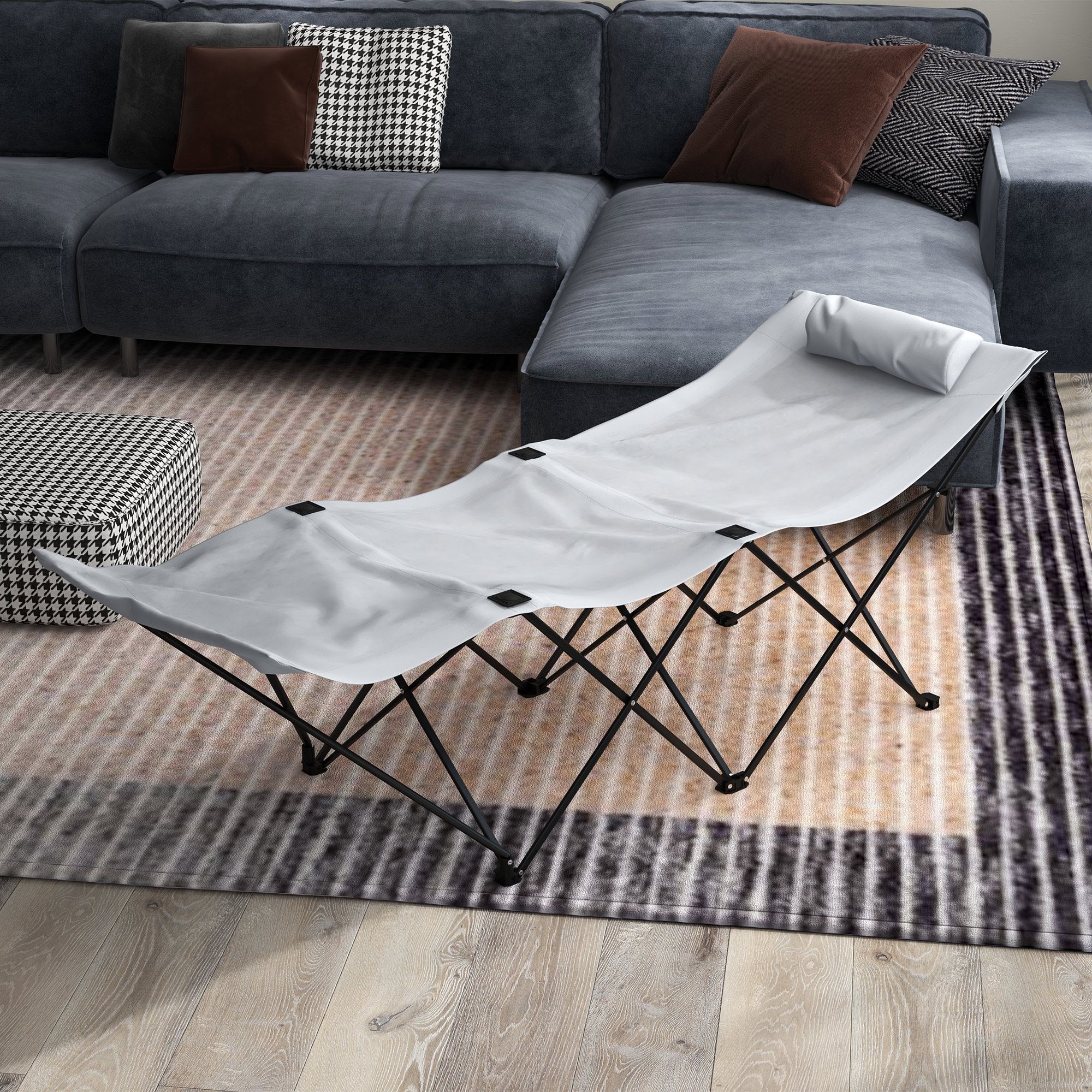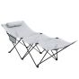 Foldable Sun Lounger, Outdoor Tanning Sun Lounger Chair with Side Pocket, Headrest, Oxford Seat, for Beach, Yard, Patio, Light Grey