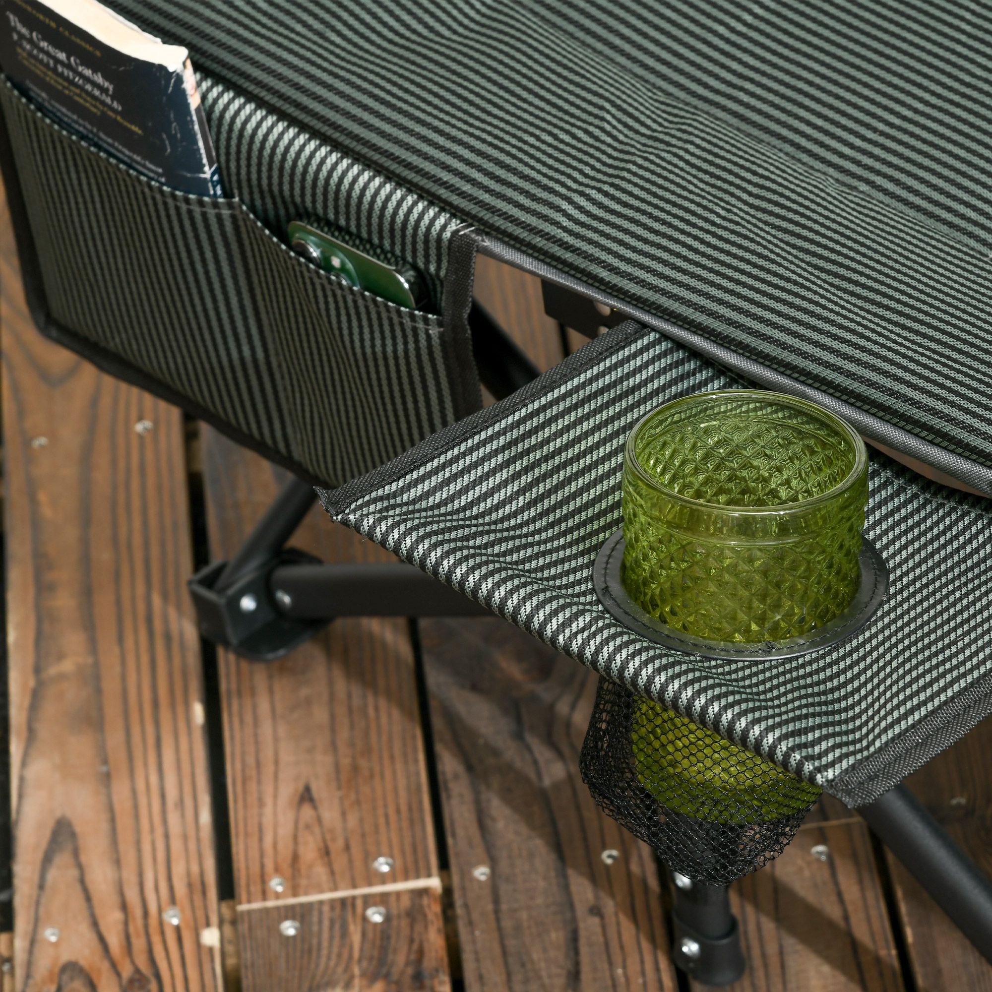 - Comfortable & convenient: This portable sun lounger lying bed surface features oxford cloth filled with soft PP cotton and maximum lying down angle 170° that is a perfect companion for a fantastic night, a leisurely afternoon, or a decompressing vacation. A magazine bag and cup holder allows easy access to drinks, magazines, phones, or other small items.