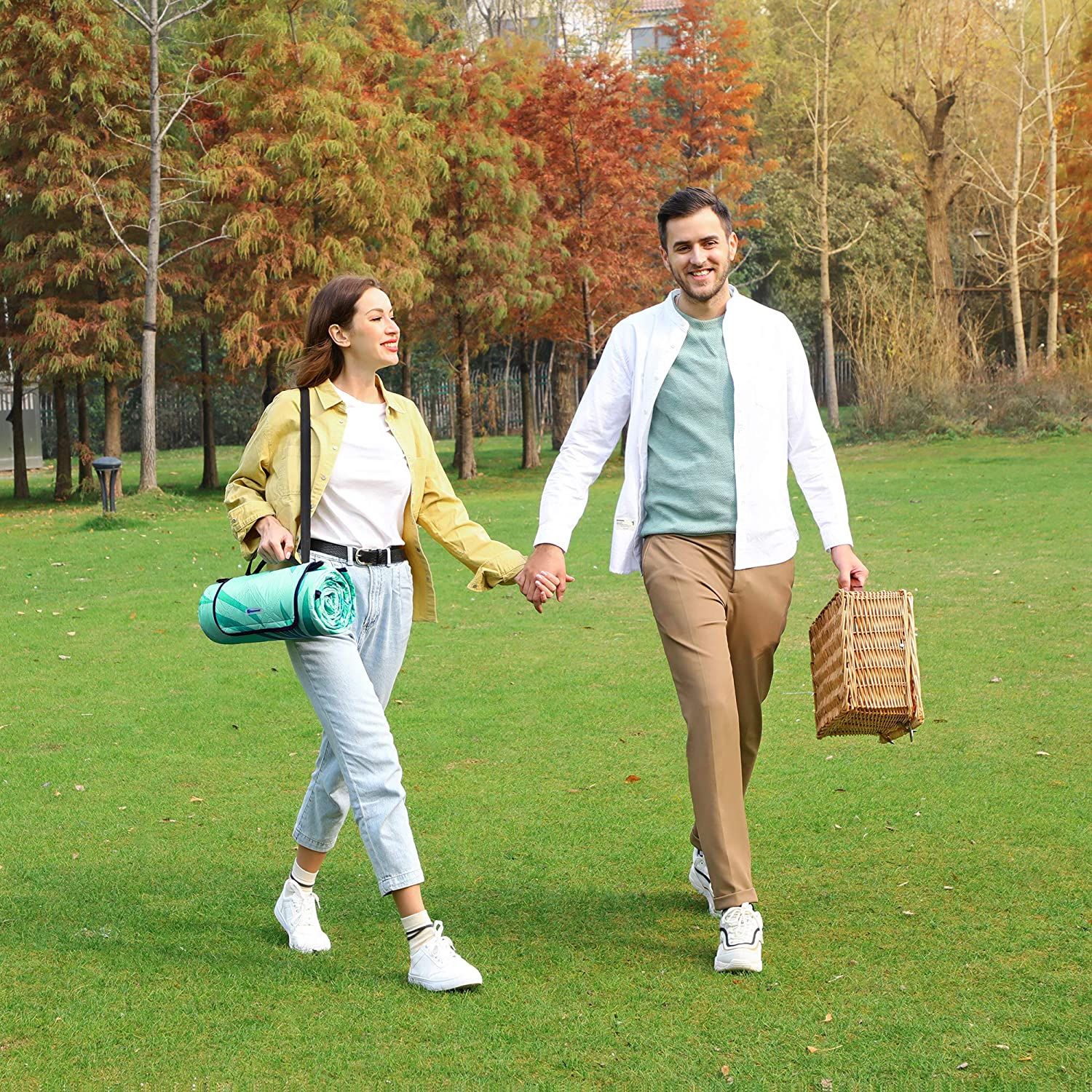 Enjoy the Great Outdoors: Be it for a spring picnic, a summer camping, a musical festival, or nice sunbathing, this picnic blanket is your go-to accessory while you're at the park, yard, beach, or countryside retreat.Built with Quality: With a soft pongee fabric top, a waterproof aluminium bottom, and a sponge padding in between, this blanket is comfortable and waterproof. Simply fold it flat into a small size and carry it around on trips.