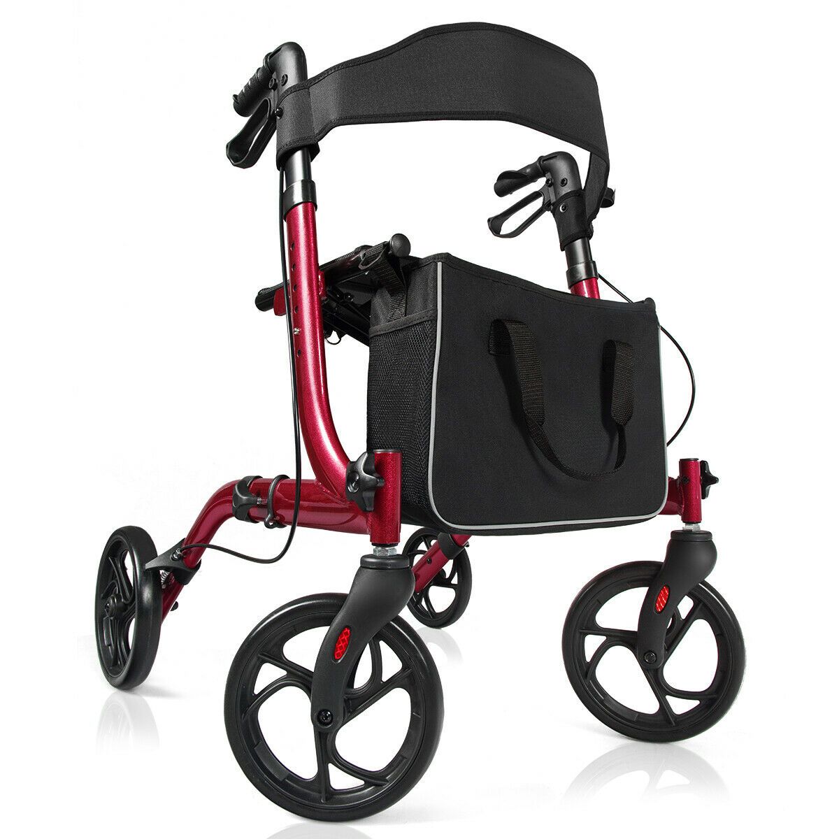 Folding Aluminium Rollator Walker Mobility Aid With 4 Wheels-Red