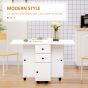 Folding Dining Table for 4-6, Rolling Drop Leaf Table with Storage Drawers, Cabinet and Open Shelf, Extendable Kitchen Table on Wheels, White