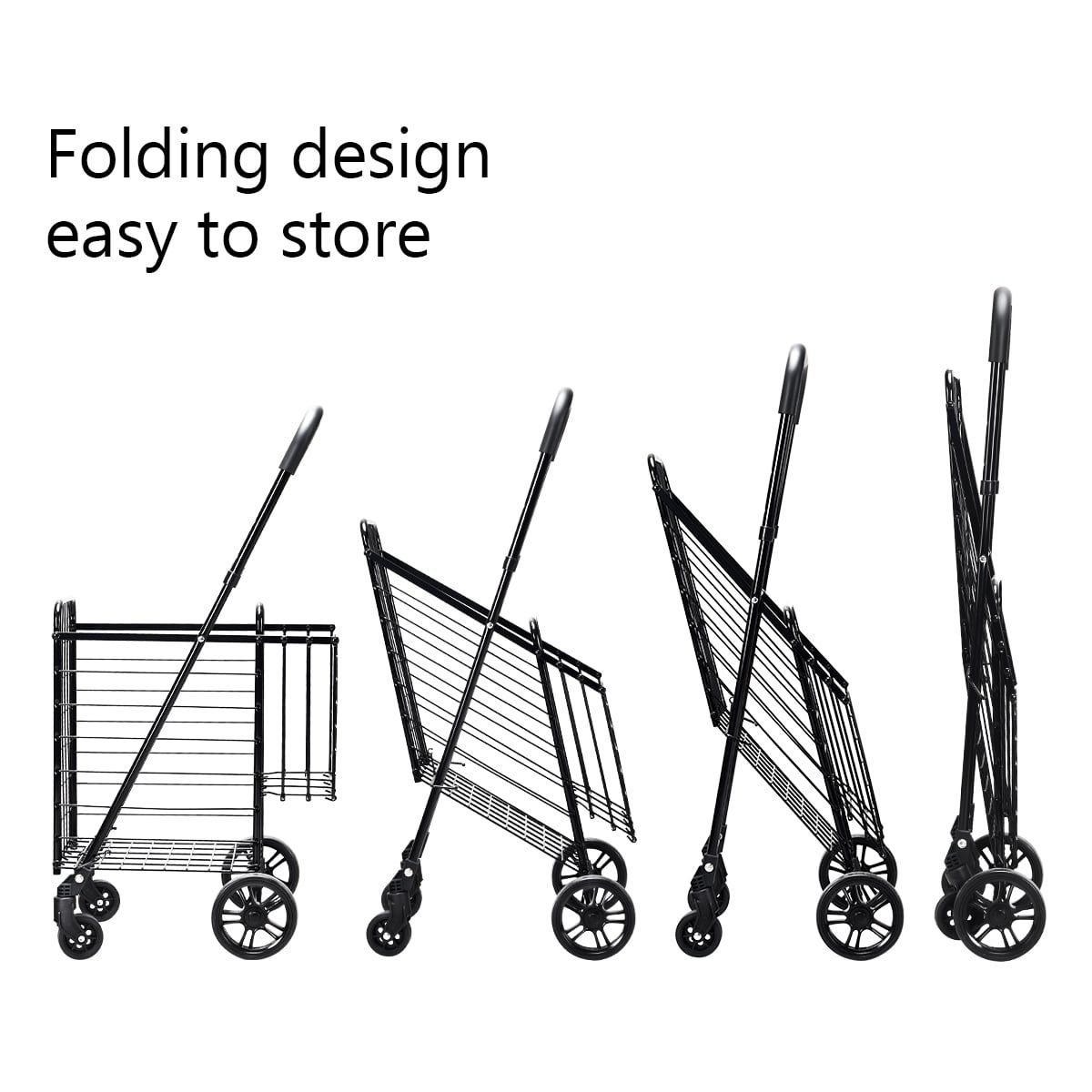 Folding Height Adjustable Shopping Trolley with Wheels-Black