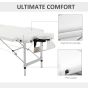 Folding PVC Leather Massage Table Aluminium Frame w/ Headrest Armrests Padding Handle Carry Bag Adjustable Height 3-Way Tri-Fold White