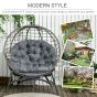 Folding Rattan Egg Chair, Freestanding Basket Chair with Cushion, Bottle Holder Bag for Outdoor or Indoor, Grey and Black