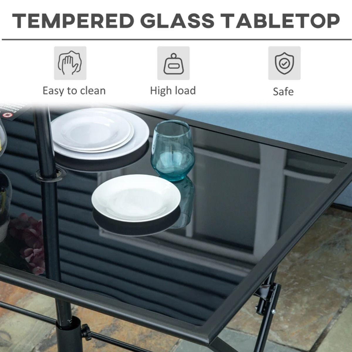 Folding Rectangle Tempered Glass Top Dining Table with Parasol Hole - Black