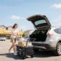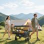 - Steel frame, with four wheels: A strong core, supporting everything whilst inside. Two wheels have a 360° movement - this festival trolley transports everything smoothly over different terrains.