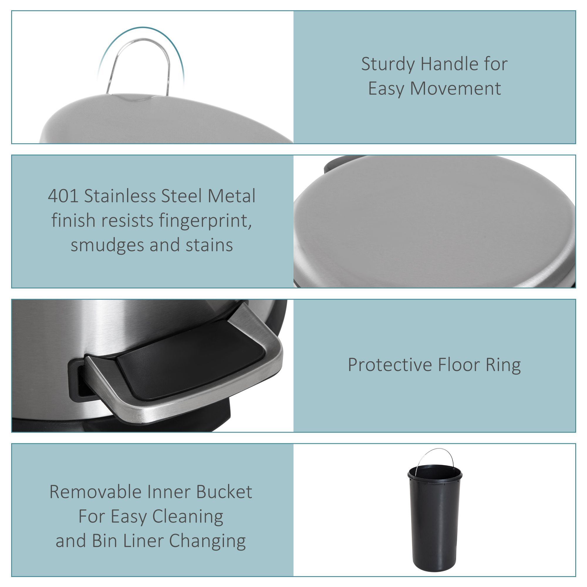 Keep your indoor space effortlessly clean with this pedal bin with lid.Made from 401 stainless steel, it is highly durable, allowing it to stand the wear and tear of everyday hectic life. Fingerprint resistant with a large capacity of 30 liters, this trash can is perfect for family life. The rubbish bin is finished with a removable inner bucket for quick emptying, a soft closure lid and a hard wearing foot pedal, so you don’t have to touch the lid to open it, making it extremely hygienic