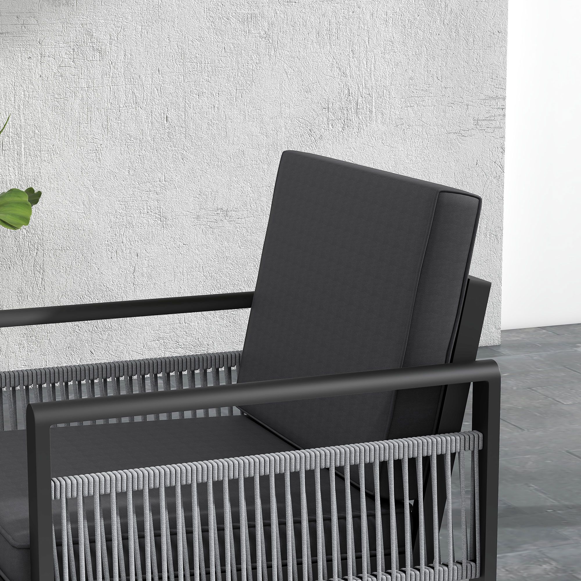 Simple style and so comfortable - this Outsunny four-piece garden furniture set. Both chairs, sofa and table are made from aluminium: strong and supportive. Seat and back cushions add comfort, complete with removable and washable covers for hygiene.