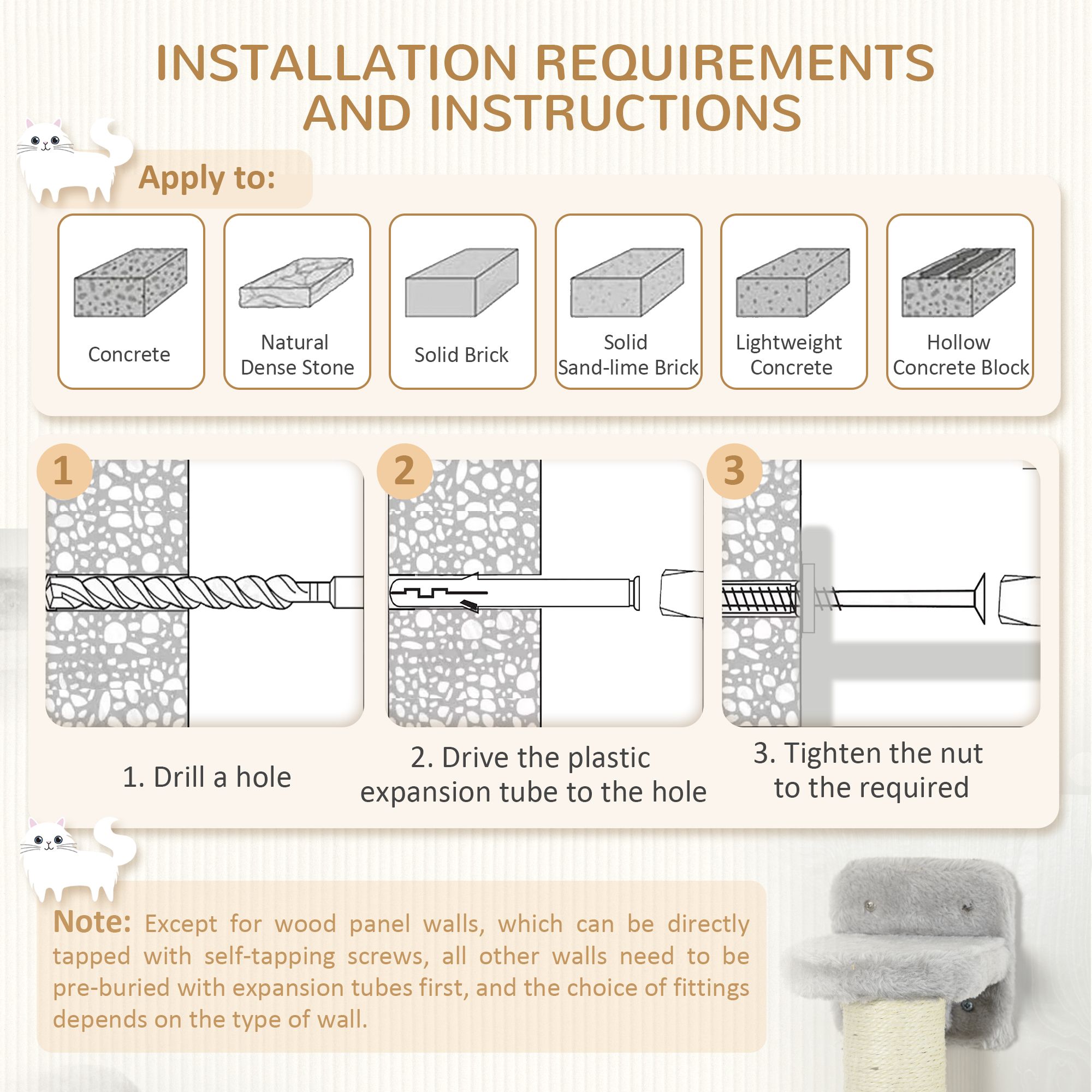 Four-Piece Cat Wall Furniture with Hammock, Perches, Ladder, Scratching Post, Grey
