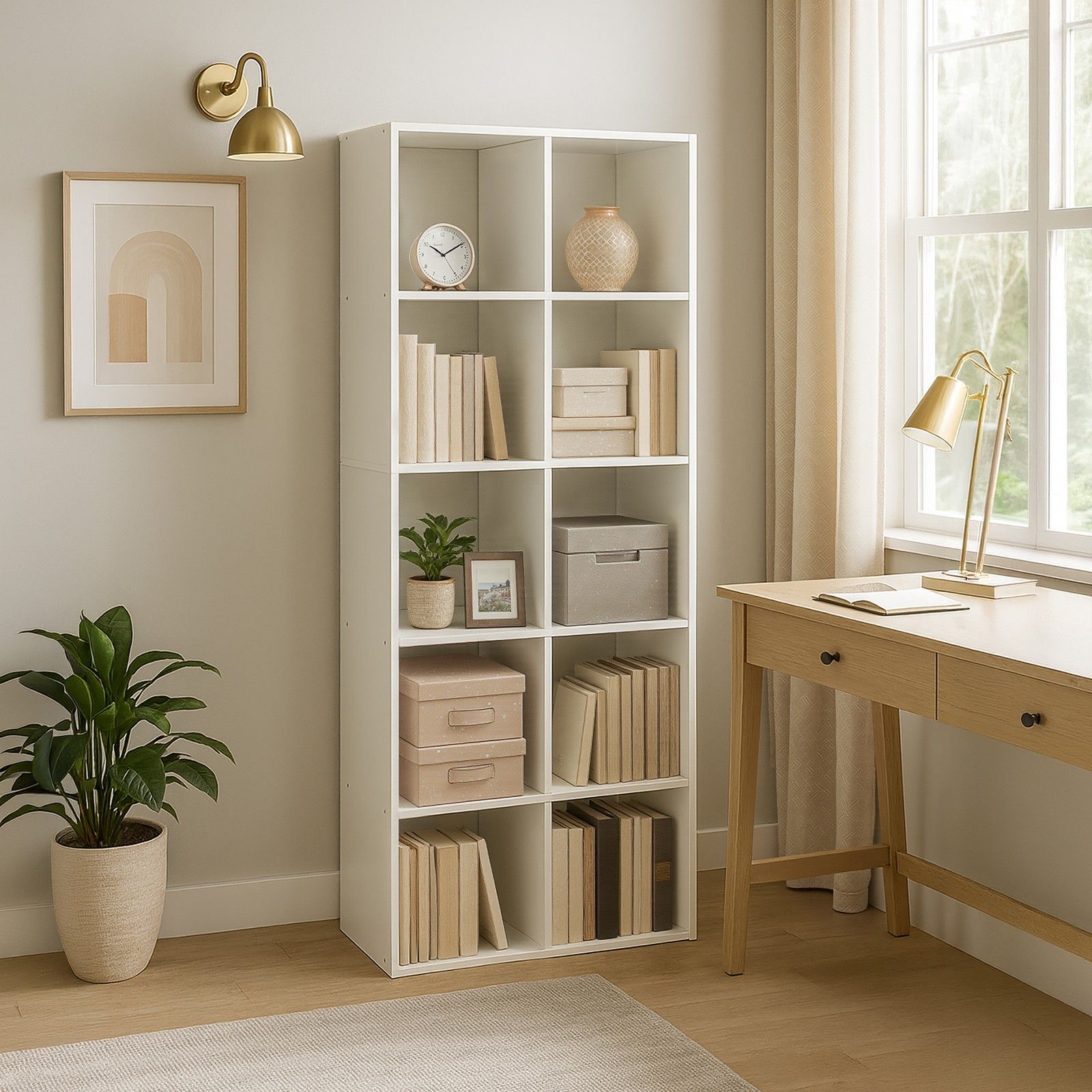 Refresh your living space with the FOXDENN 10 Cube Storage Bookcase - White. This versatile furniture piece offers a stylish way to organise your home while adding a modern touch to any room. Crafted from durable materials, it provides a strong and reliable structure for everyday use. Designed to fit seamlessly into contemporary interiors. It keeps your space organised while elevating your décor. Designed for straightforward assembly and daily use.