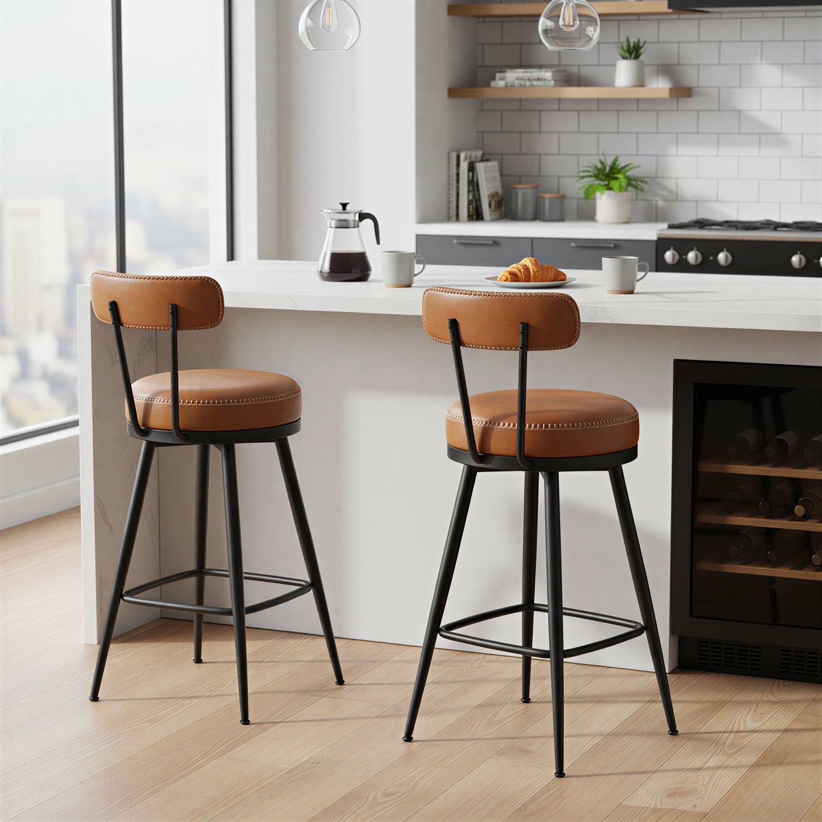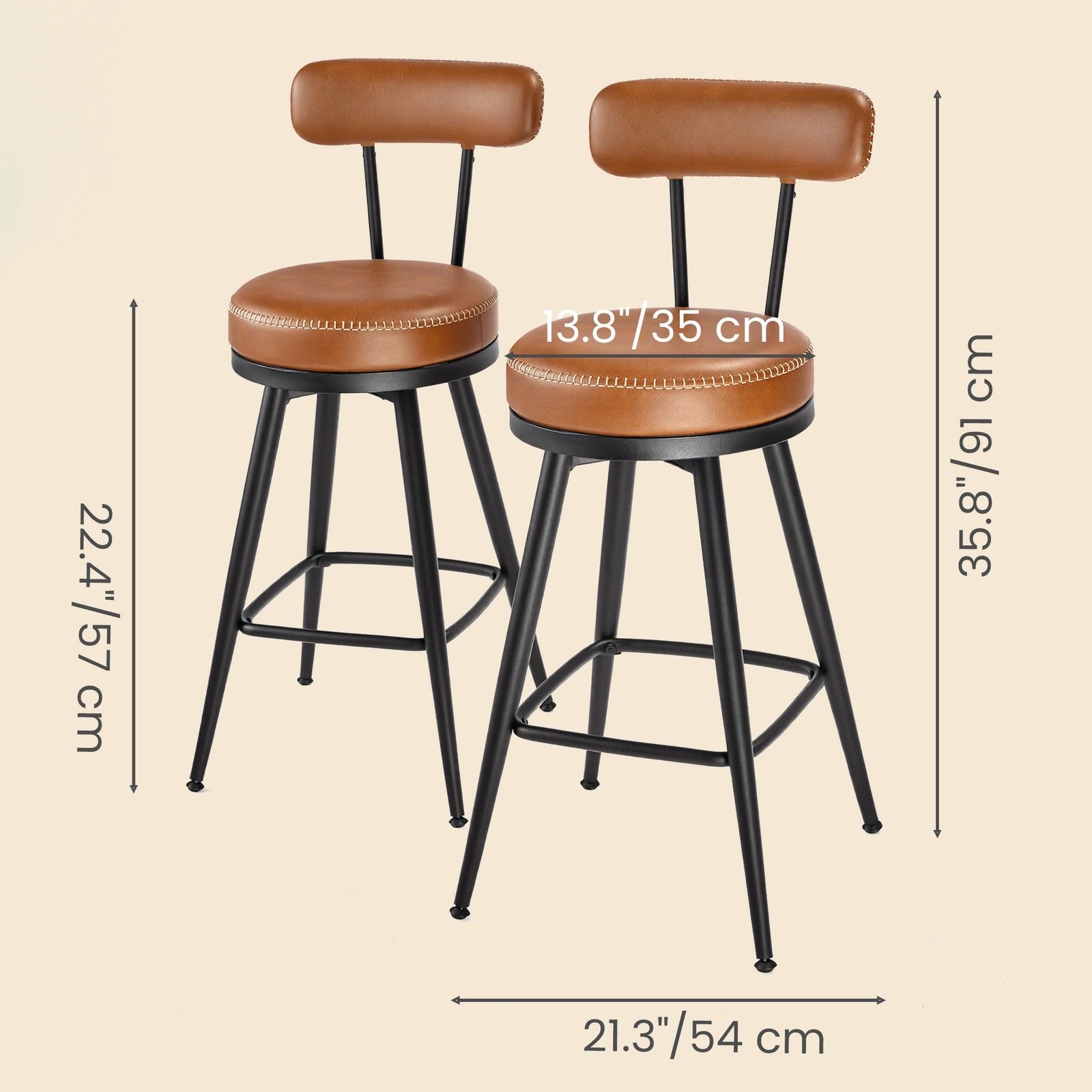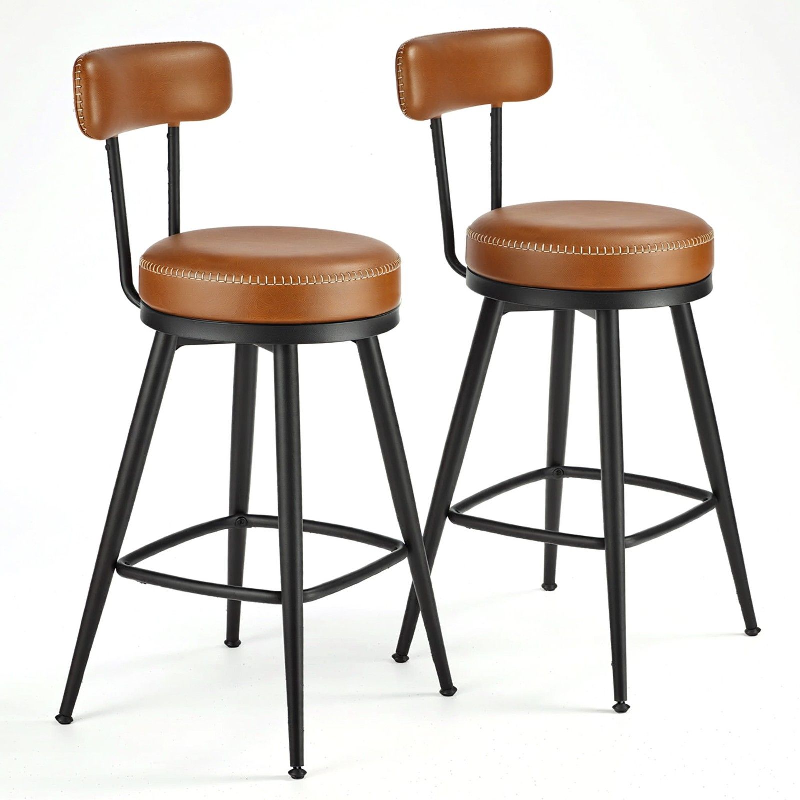 FOXDENN Mid Century Counter Height Swivel Bar Stool Set of 2 - Brown