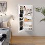 Weight: 14.5 kgColour: whiteMaterial: density boardDimensions: 37 x 10 x 108 cm (W x D x H)Size of the external mirror: 37 x 108 cm (W x D)Shipping list:1 x Jewelry Cabinet2 x Door Hooks1 x Pack of Screws1 x Hook-and-loop fastener2 x Keys1 x Instructions