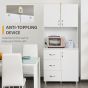 Free standing Kitchen Cabinet Cupboard with 2 cabinet, 3 drawers and 1 Open Space, Adjustable Height Storage Unit, White