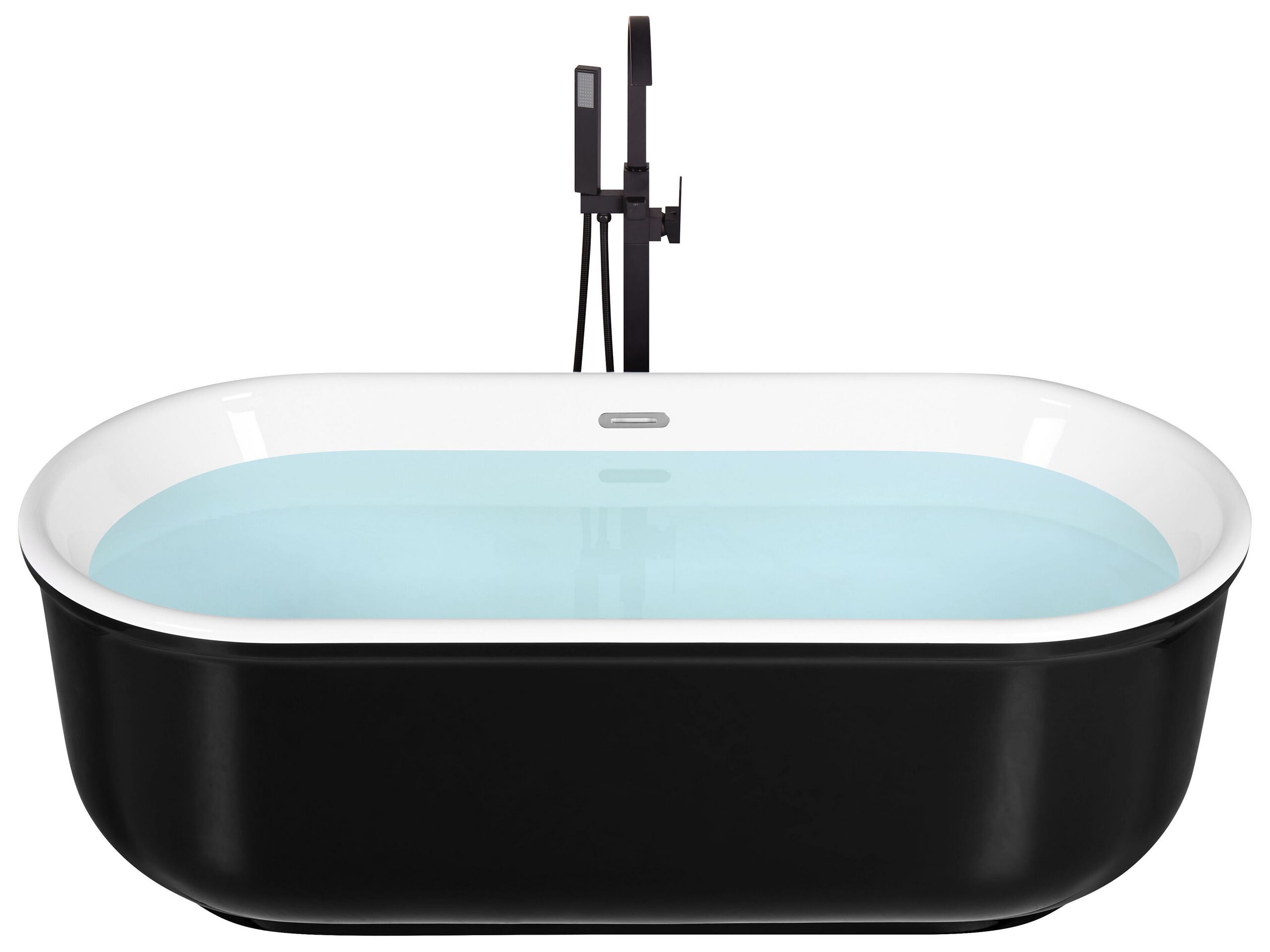 Designed for the ultimate leisure and relaxation, this oval tub features charmingly rounded edges. The minimalistic silhouette makes an eye-catching centrepiece, enriching the look of any modern bathroom. Featuring reinforced acrylic in a stylish black gloss finish, it is characterised by high durability, shock resistance and easy cleaning. Details: Color: Black, White, Silver. Main material: Acrylic. Weight: 50 Capacity: 1 Person Assembly: Requires Installation Weight Capacity: 300