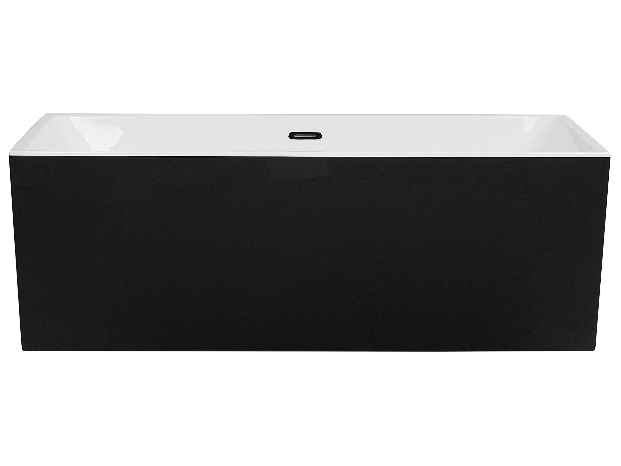 This elegant and straightforward freestanding bath features a modern design, thanks to which it perfectly complements any bathroom. The classic, rectangular shape is highlighted by a black, glossy surface which adds to its sophistication. The tub is made from sturdy and durable sanitary acrylic and is strengthened by a fibreglass layer for extra protection. Its ergonomic design allows for long, comfortable hours of relaxation for one or two people. Details: Color: Black, White. Main material: Acrylic. Weight: 60 Capacity: 1 Person Assembly: Requires Installation Weight Capacity: 300
