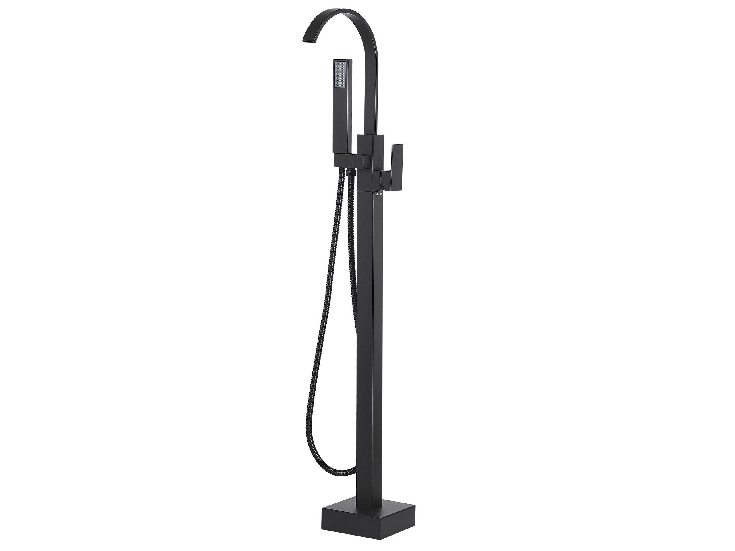 This freestanding bathtub faucet adds a modern touch to every bathroom. Featuring a black finish, it is made of high-quality brass for durability and easy maintenance. The hand-held shower head and curved mixer tap are convenient to use, while the contemporary design adds a stylish accent to your bathroom. Details: Color: Black. Main material: Brass. Additional material: Synthetic Material, Stainless Steel, Zinc. Weight: 4 Assembly: Requires Installation and Assembly