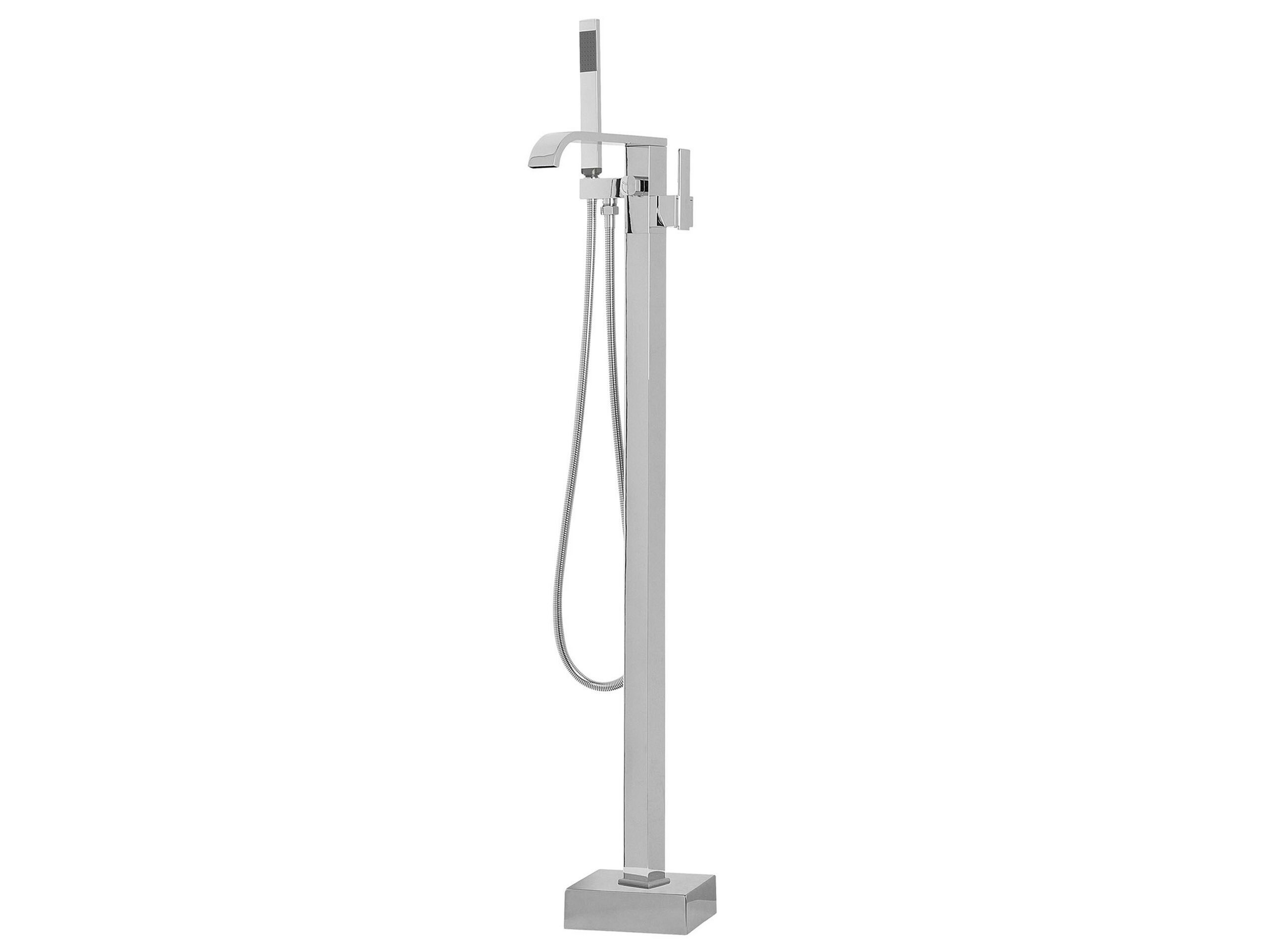 A free-standing bath tap that is the perfect combination of functionality and style. The sleek, angular design will complement any contemporary bathroom while double-layer chrome plating ensures durability and easy maintenance. Featuring a hand-held shower head designed for efficiency and performance, the tap comes with high-quality ceramic cartridge technology that provides precise temperature and water pressure. Details: Color: Silver. Main material: Brass. Additional material: Zinc. Weight: 4 Assembly: Requires Installation and Assembly