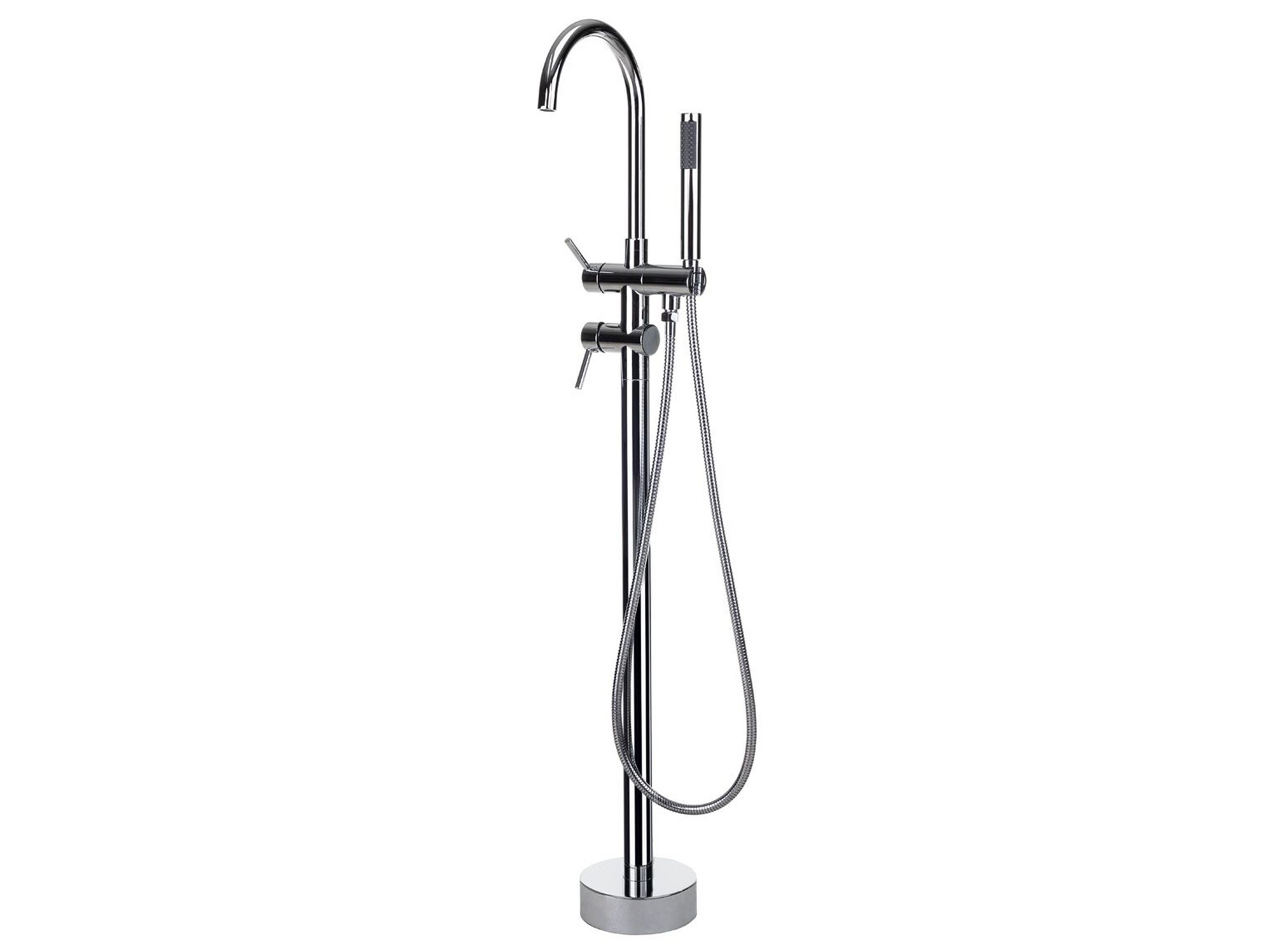This elegant, freestanding bathtub faucet fits into any bathroom, either in modern or traditional style. Made out of durable brass, it features a gloss silver finish for a sophisticated look. The mixer tap is suitable for freestanding baths and for all gas and electric water heaters. Convenient and easy-to-use two-lever mixer with high-quality ceramic cartridge technology provides precise temperature control and regulates the water flow. Details: Color: Silver. Main material: Brass. Additional material: Synthetic Material, Stainless Steel, Zinc. Weight: 5 Assembly: Requires Installation and Assembly