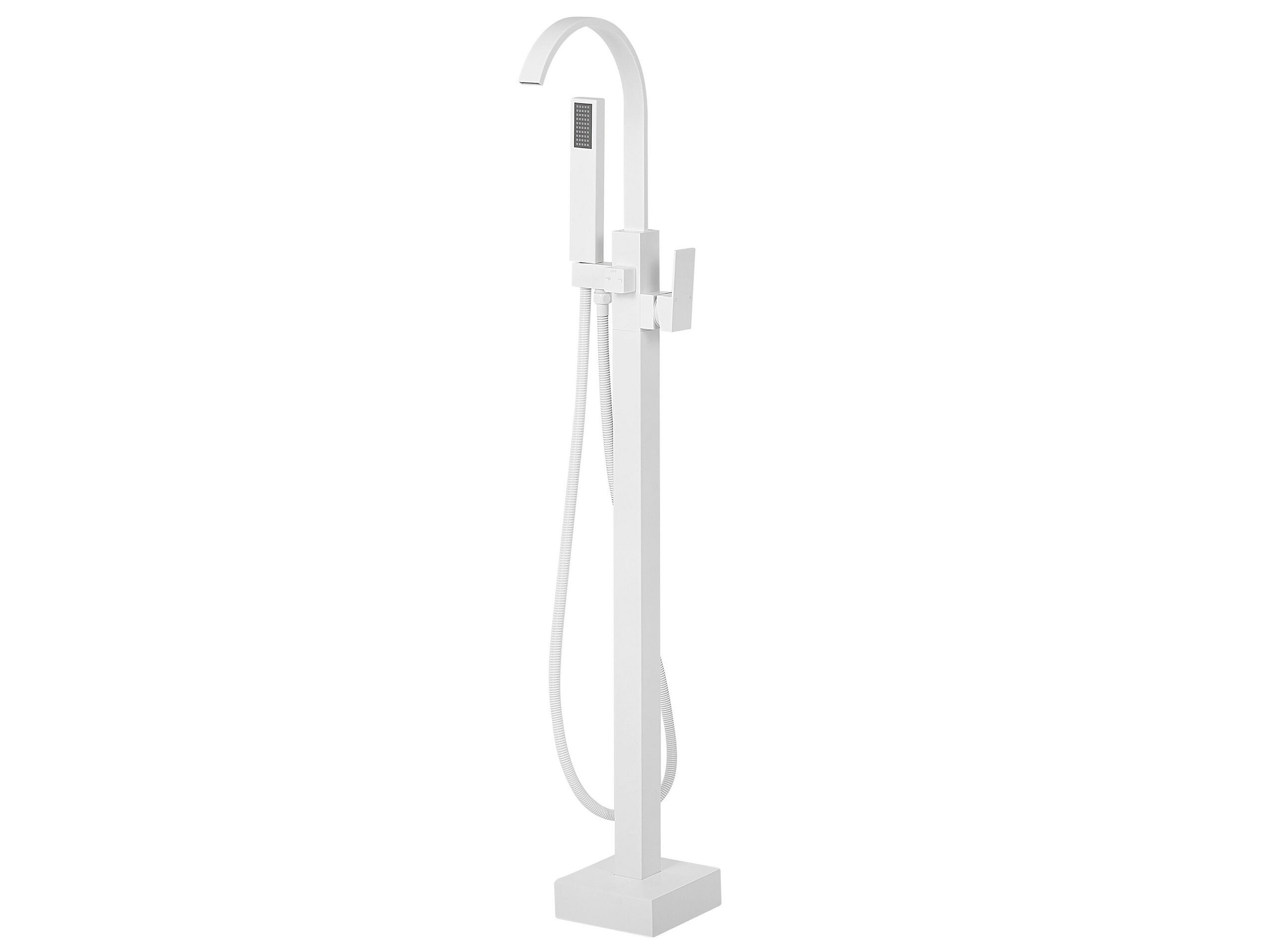 This freestanding bathtub faucet adds a modern touch to every bathroom. Featuring a white finish, it is made of high-quality brass for durability and easy maintenance. The hand-held shower head and curved mixer tap are convenient to use, while the contemporary design adds a stylish accent to your bathroom. Details: Color: White. Main material: Brass. Additional material: Synthetic Material, Stainless Steel, Zinc. Weight: 4 Assembly: Requires Installation and Assembly