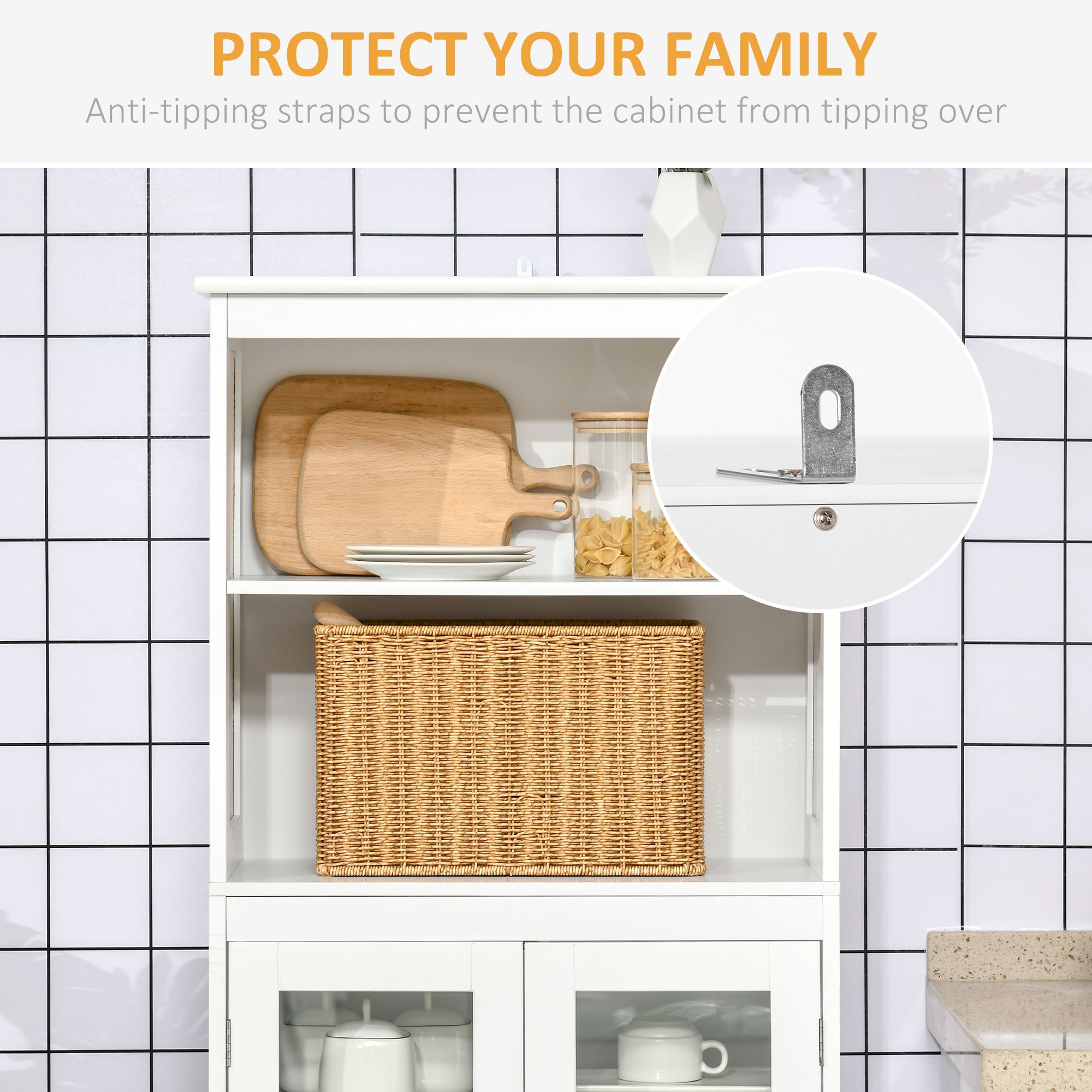 - Anti-tipping straps: Attach this bathroom storage cabinet to the wall for safety.
