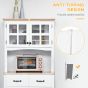 Freestanding Kitchen Cupboard, Kitchen Storage Cabinet with Framed Glass Doors, 2 Drawers, Microwave Counter, White