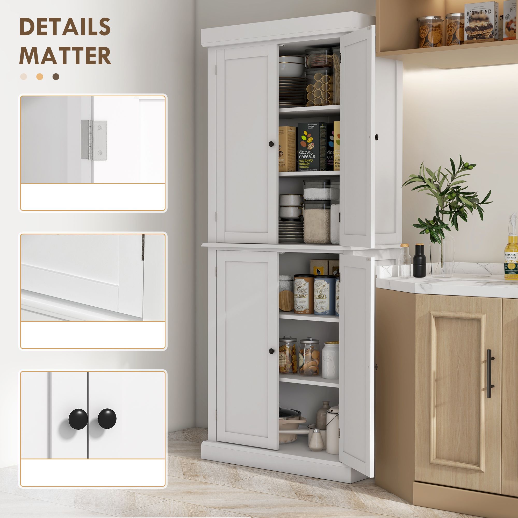 Freestanding Kitchen Cupboard with 4 Doors, Storage Cabinet with 6-Tier Shelving and 4 Adjustable Shelves, White