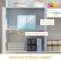 A multi-storage kitchen dresser which gives you multi-storage space: this tall cabinet. It features top and bottom cupboards, a drawer and open middle shelf; each cupboard comes with a three-level adjustable shelf so you can fit in smaller and larger pieces.