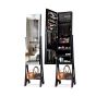 Freestanding Mirror Jewelry Cabinet with Full Length Frameless Mirror-Black