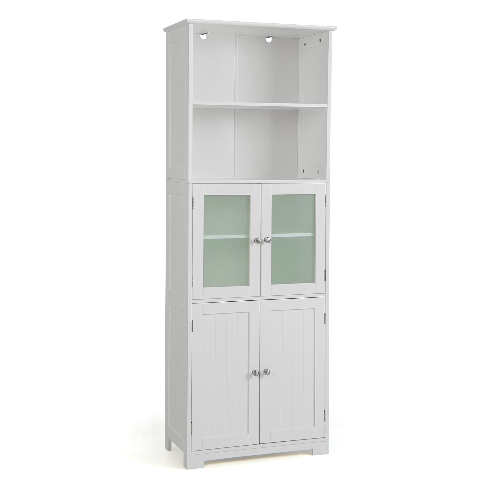 Freestanding Storage Cabinet with Tempered Glass Door and Open Shelves, -White