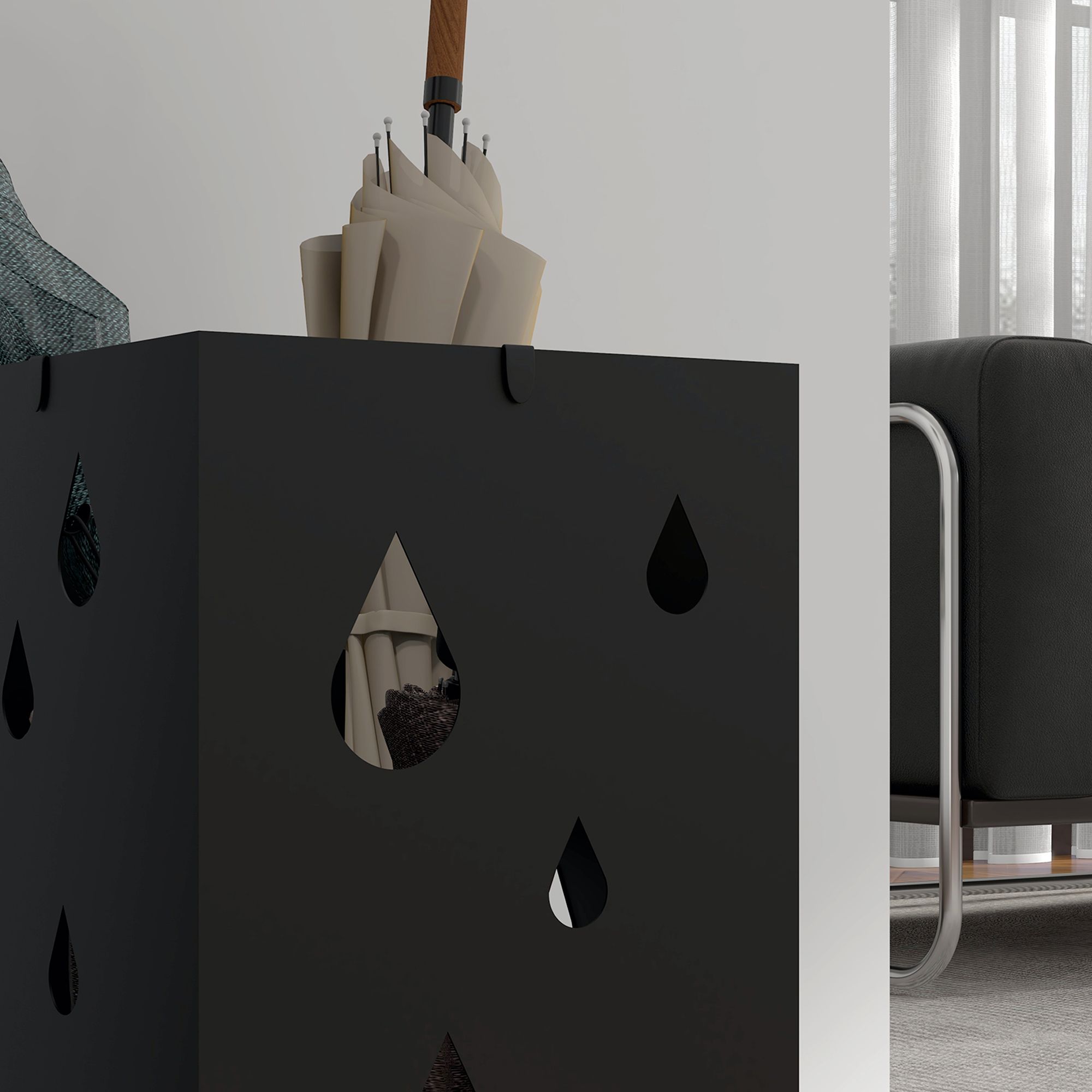 Freestanding Umbrella Stand with 4 Hooks and Drip Tray - Dark Grey