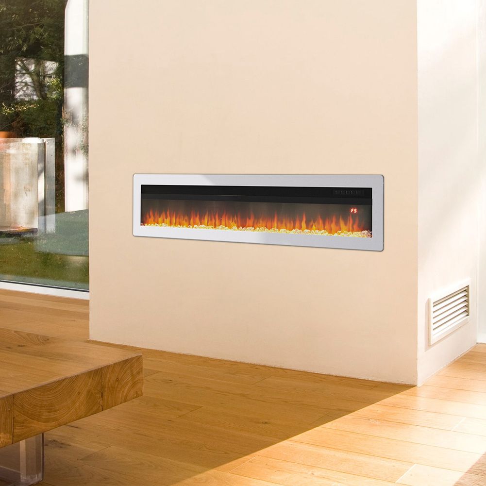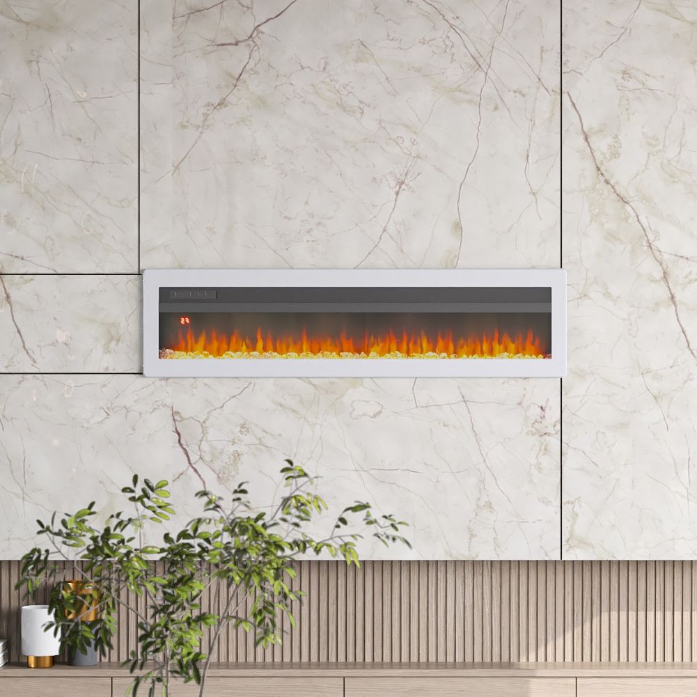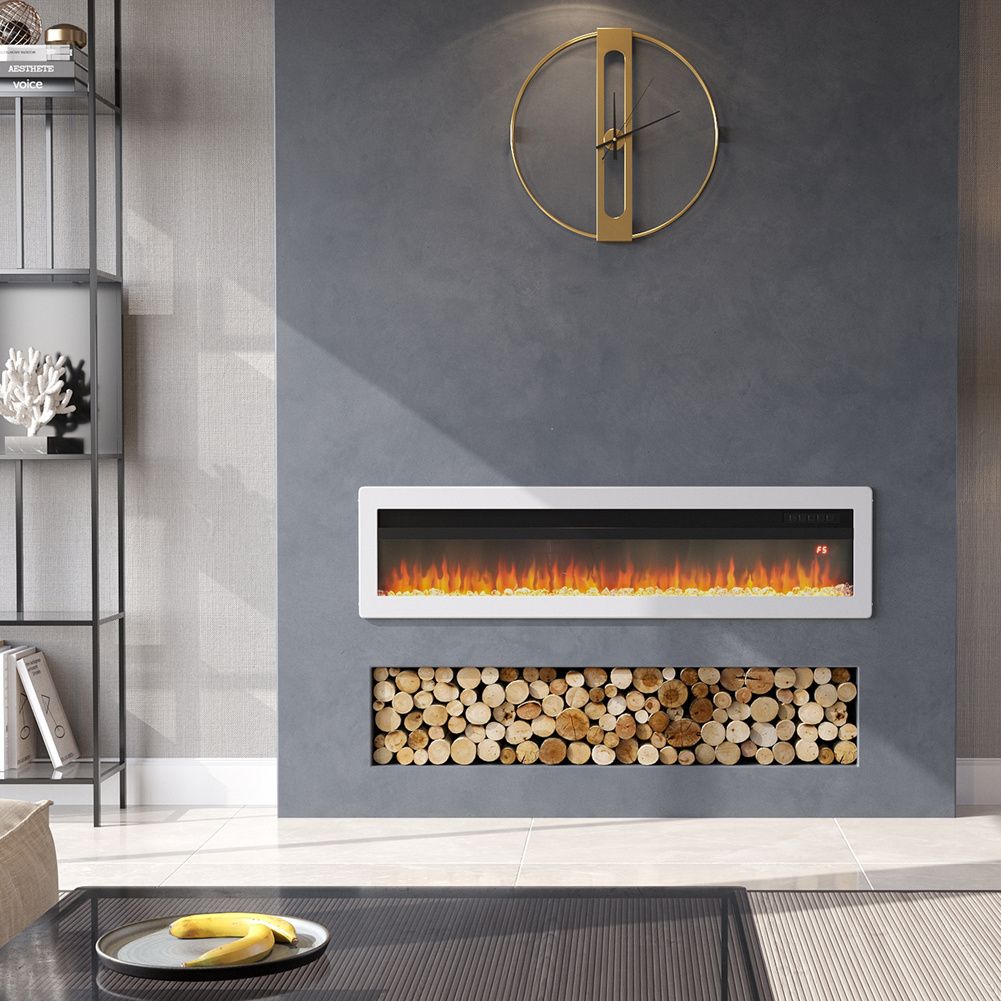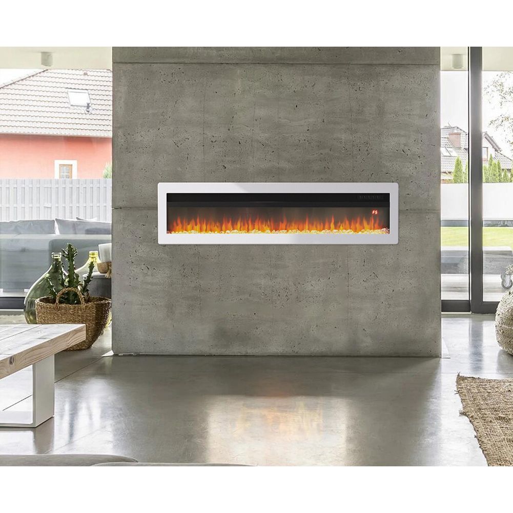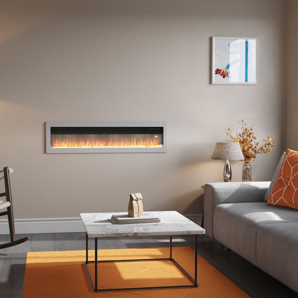 Freestanding Wall Mounted Recessed Electric Fire - White 50 Inch